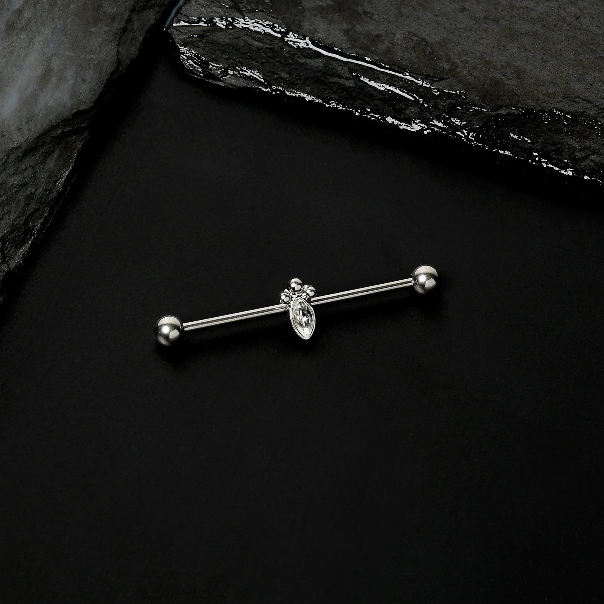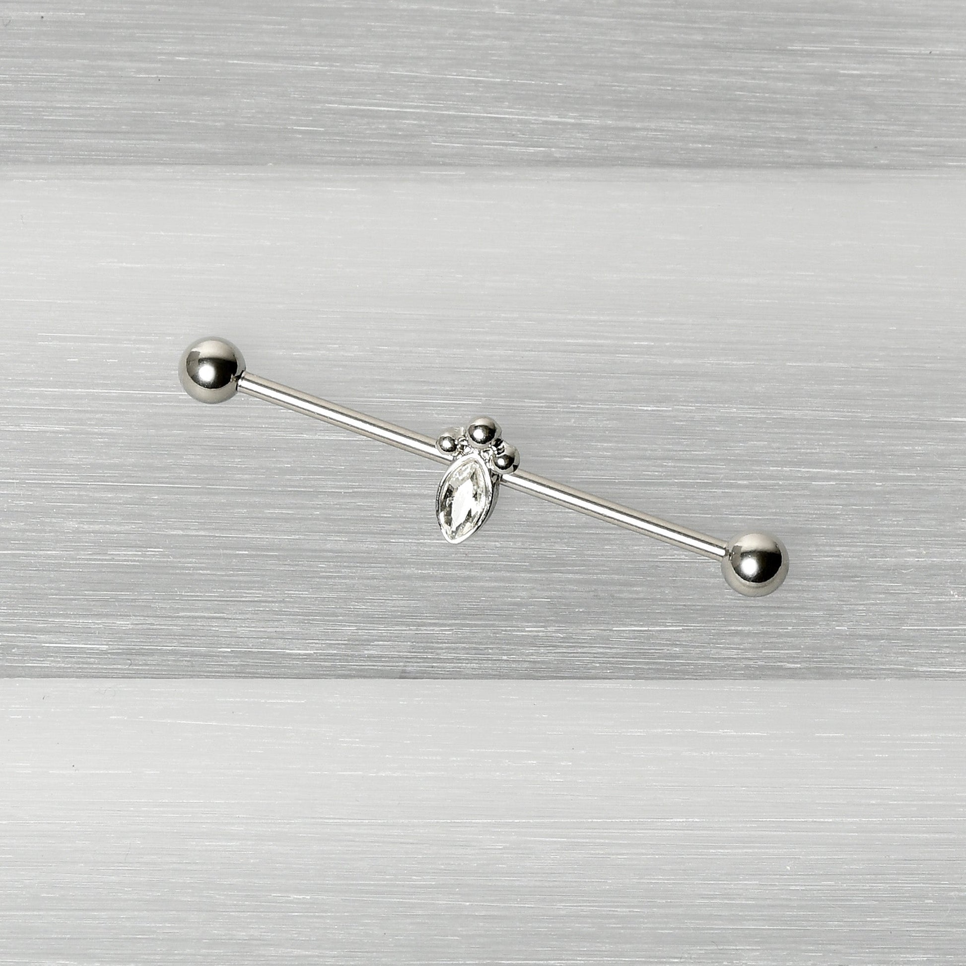 14 Gauge Gem Deco Oval Industrial Barbell 38mm
