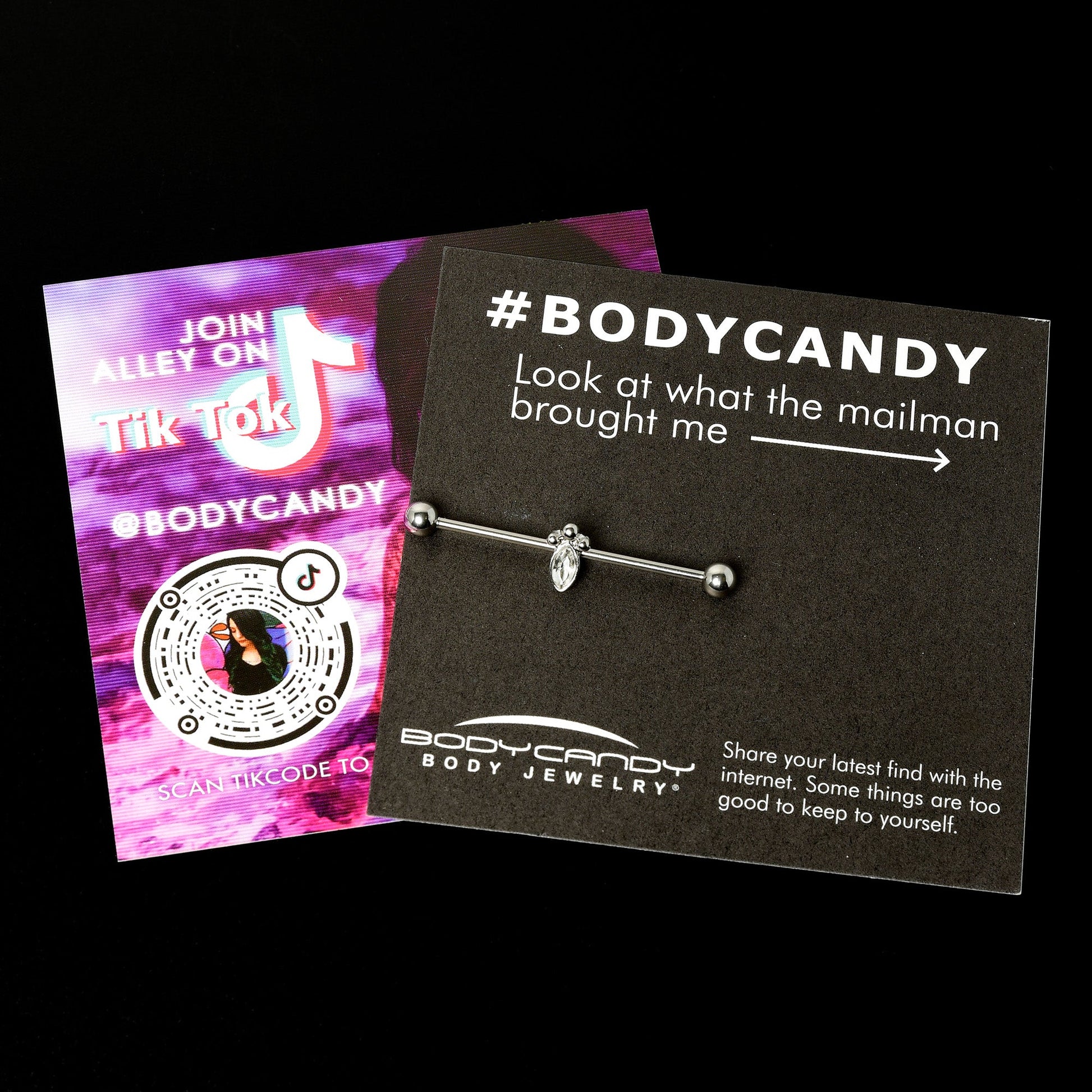 Add a bit of color and classic style to your look with this 14 gauge helix barbell. It's made with a 1 1/2 inch 316L surgical grade stainless steel straight barbell with 5mm ball ends. It features an oval charm. The oval has a clear gem at the center for a lovely splash of antique style and it's further embellished with a with textured detailing at one end. You can even slide it up and down the length of the barbell for the perfect look. Give a new impact to your style when you're rocking this opulent, oval-themed barbell earring.Specifications