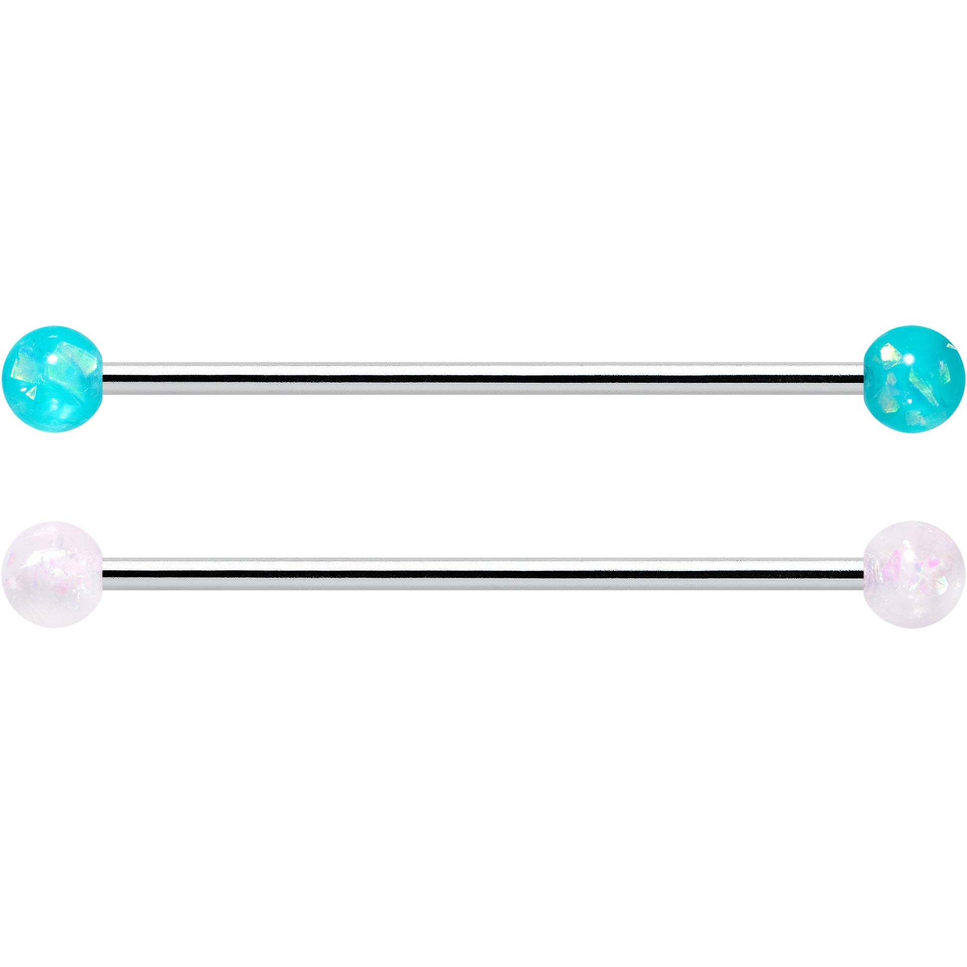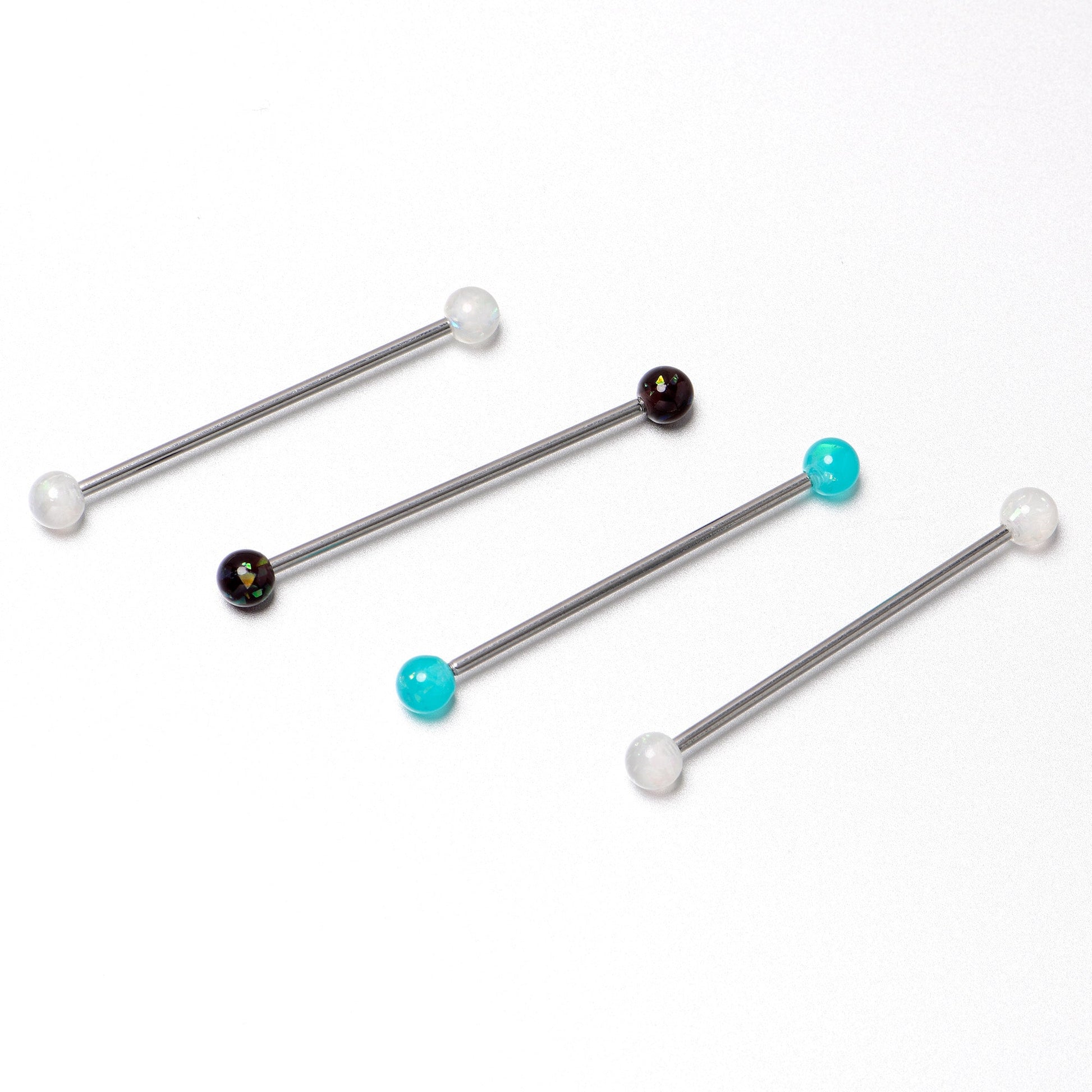 14 Gauge (1.6mm), 1 1/2" (38mm), 316L Surgical Grade Stainless Steel Straight Barbells, Faux Opal, Sold as a Set of 4