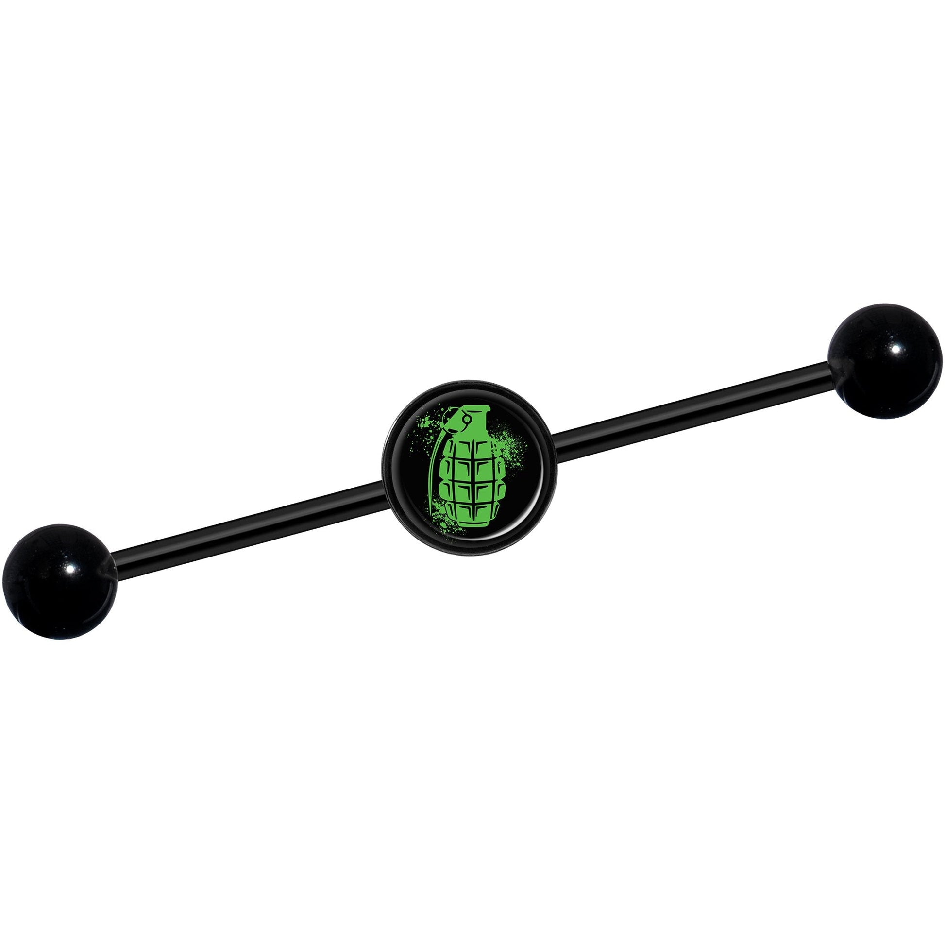 14 Gauge Green Grenade Black Industrial Barbell 37mm