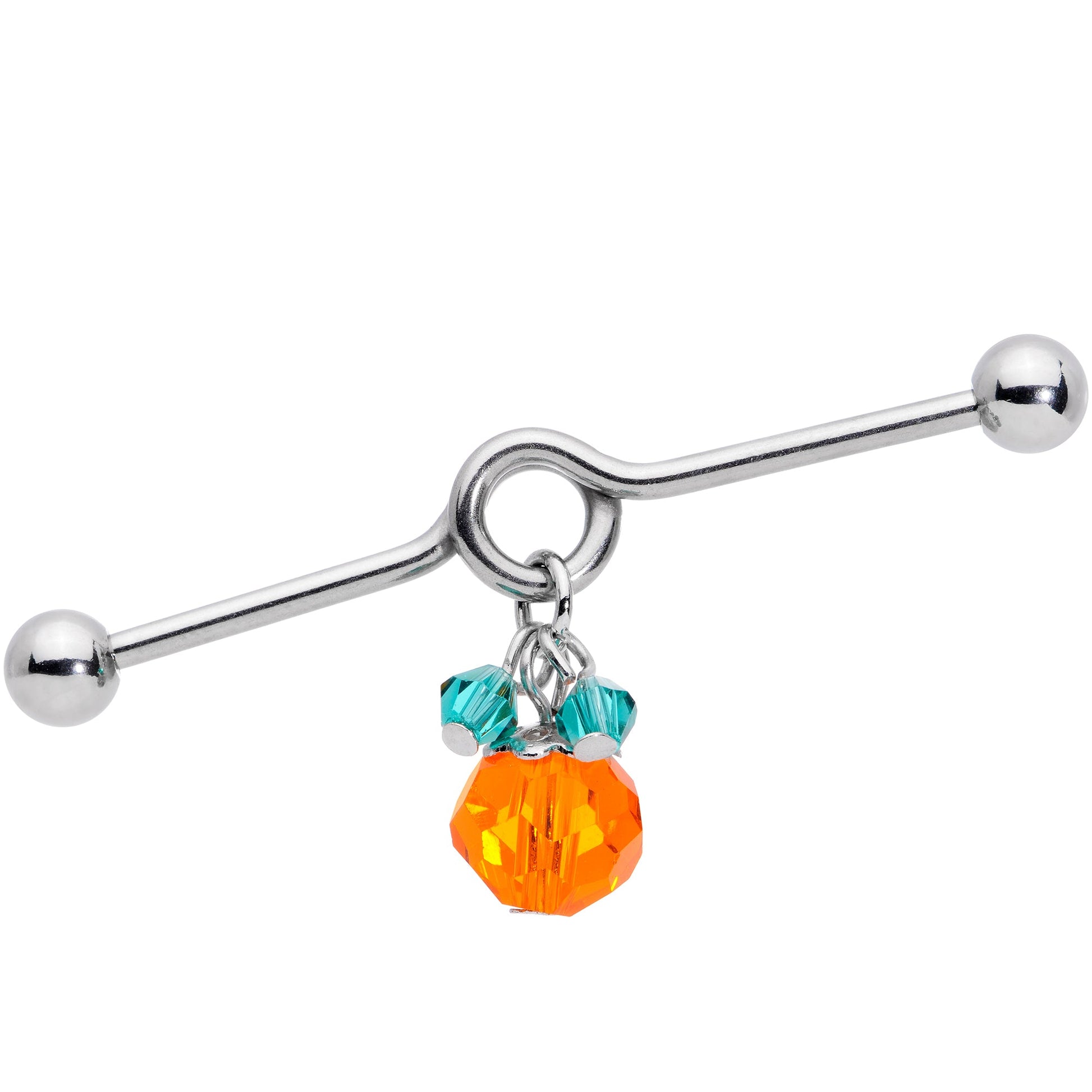 14G Green Orange Gem Pumpkin Halloween Dangle Project Bar 38mm