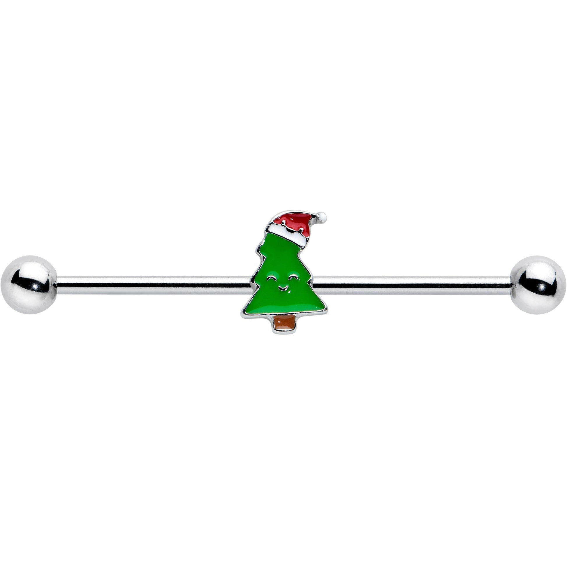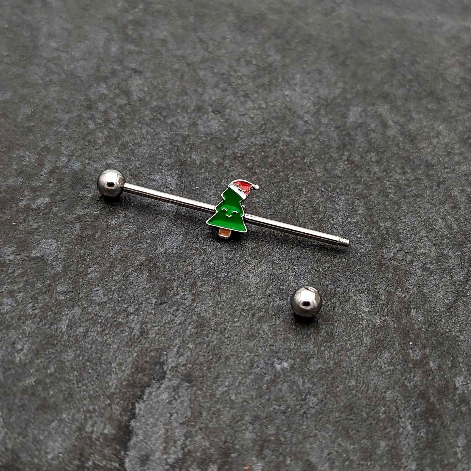 14 Gauge Happy Christmas Tree Hat Holiday Industrial Barbell 38mm