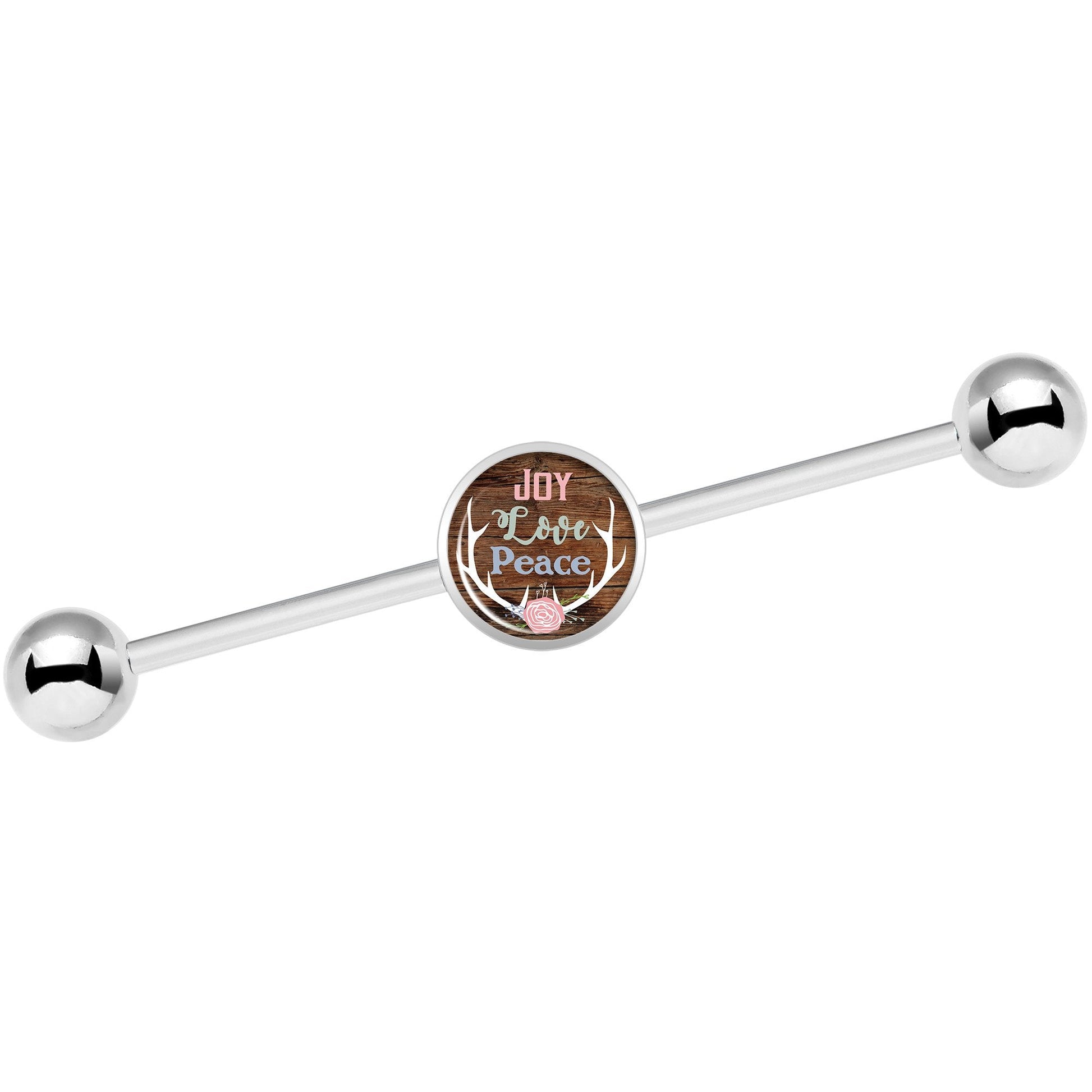 ,14 Gauge Joy Love Peace Antlers Industrial Barbell 37mm