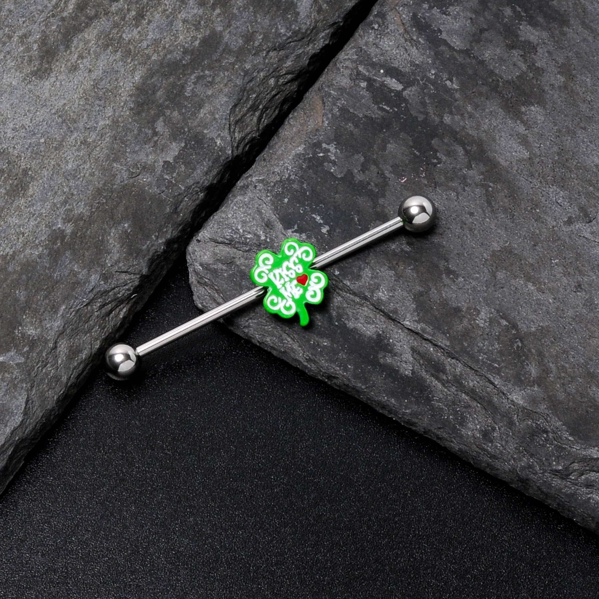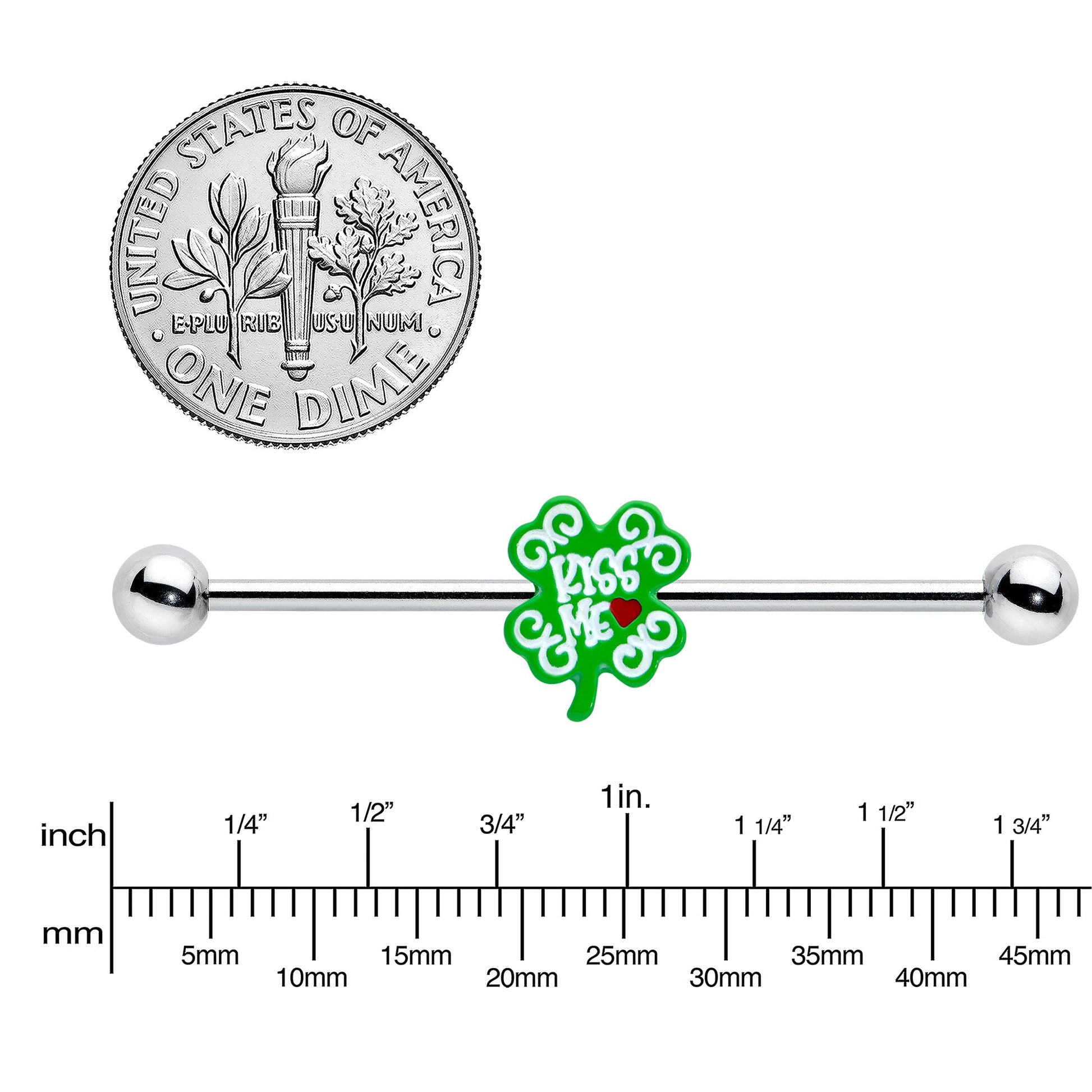 14G Kiss Me Shamrock St Patricks Industrial Barbell 38mm