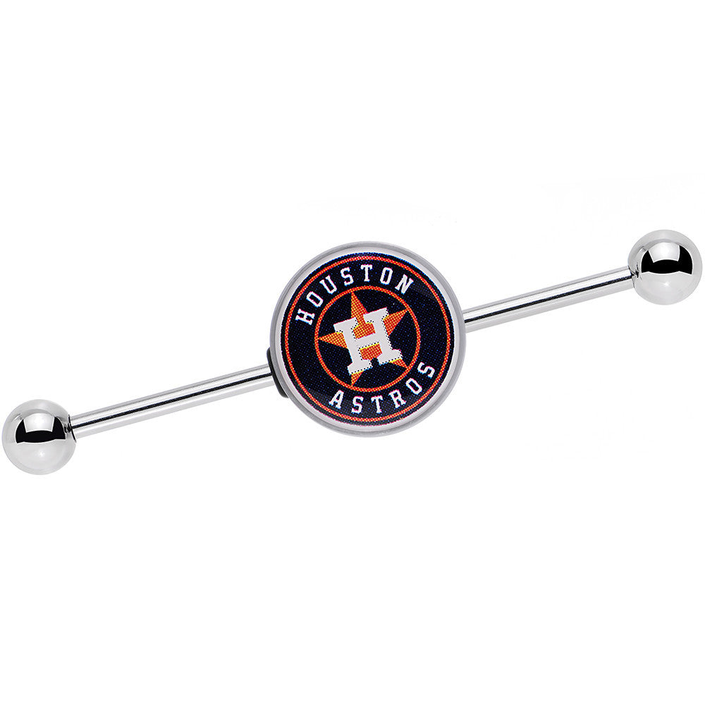 Get ready to hit a fashion home run that will make the crowd go wild when you wear this officially licensed MLB helix barbell. Made from a 1 1/2" surgical grade stainless steel straight barbell, this industrial piercing features a moveable officially licensed Houston Astros logo charm. Whether you are a serious fan of Major League Baseball and the American League West or are into baseball for the love of the game this industrial jewelry is perfect for you.