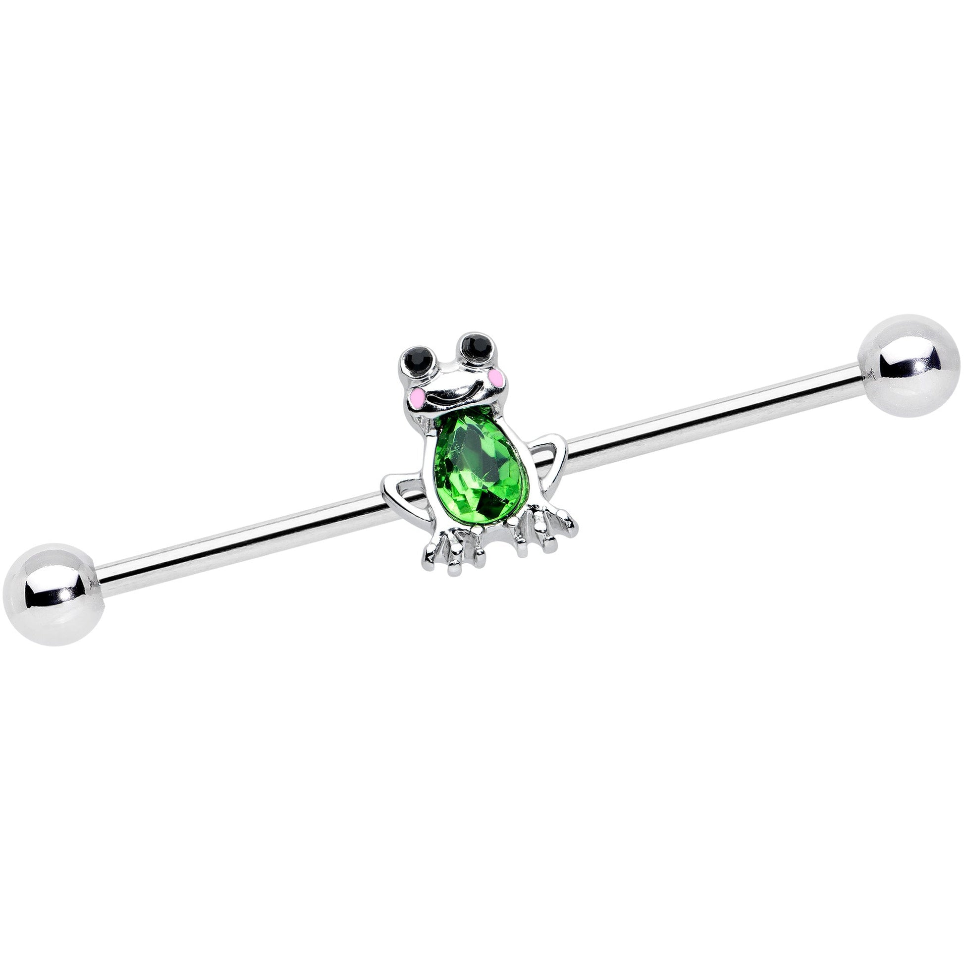 14 Gauge Light Green Gem Groovy Frog Industrial Barbell 38mm