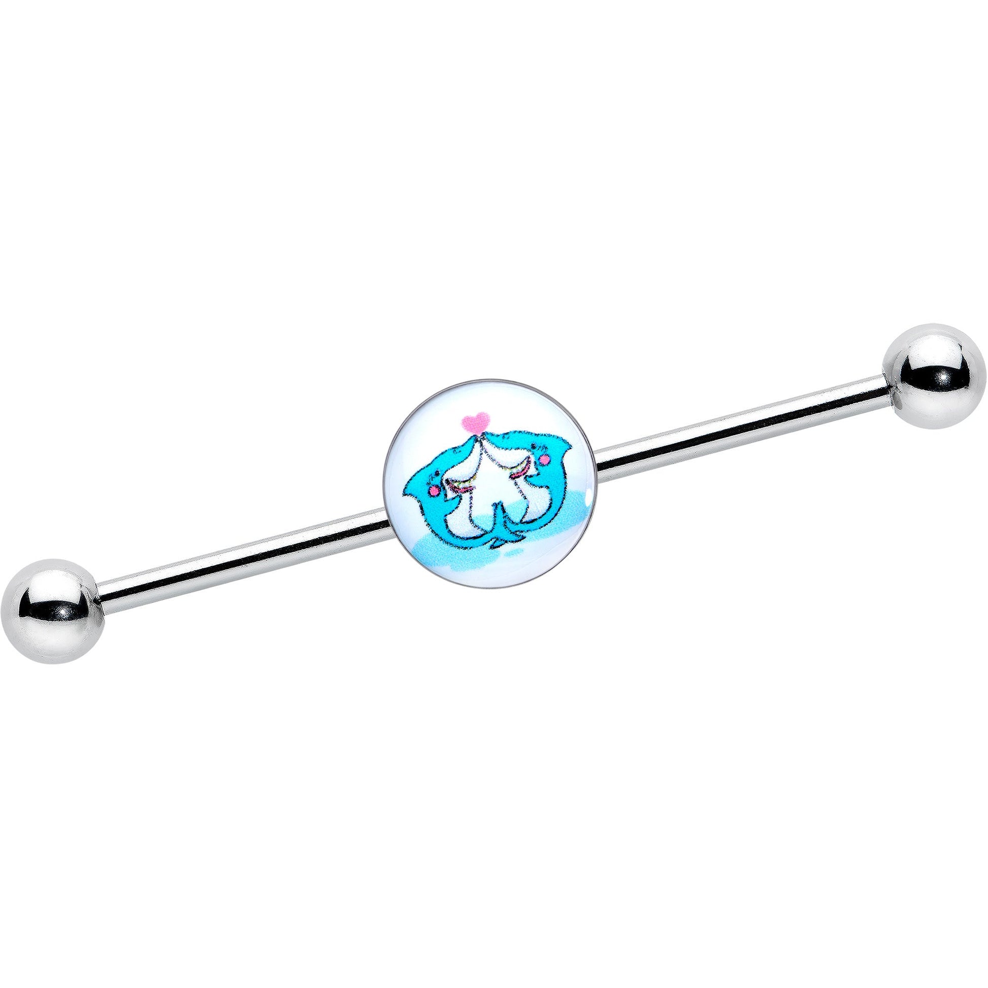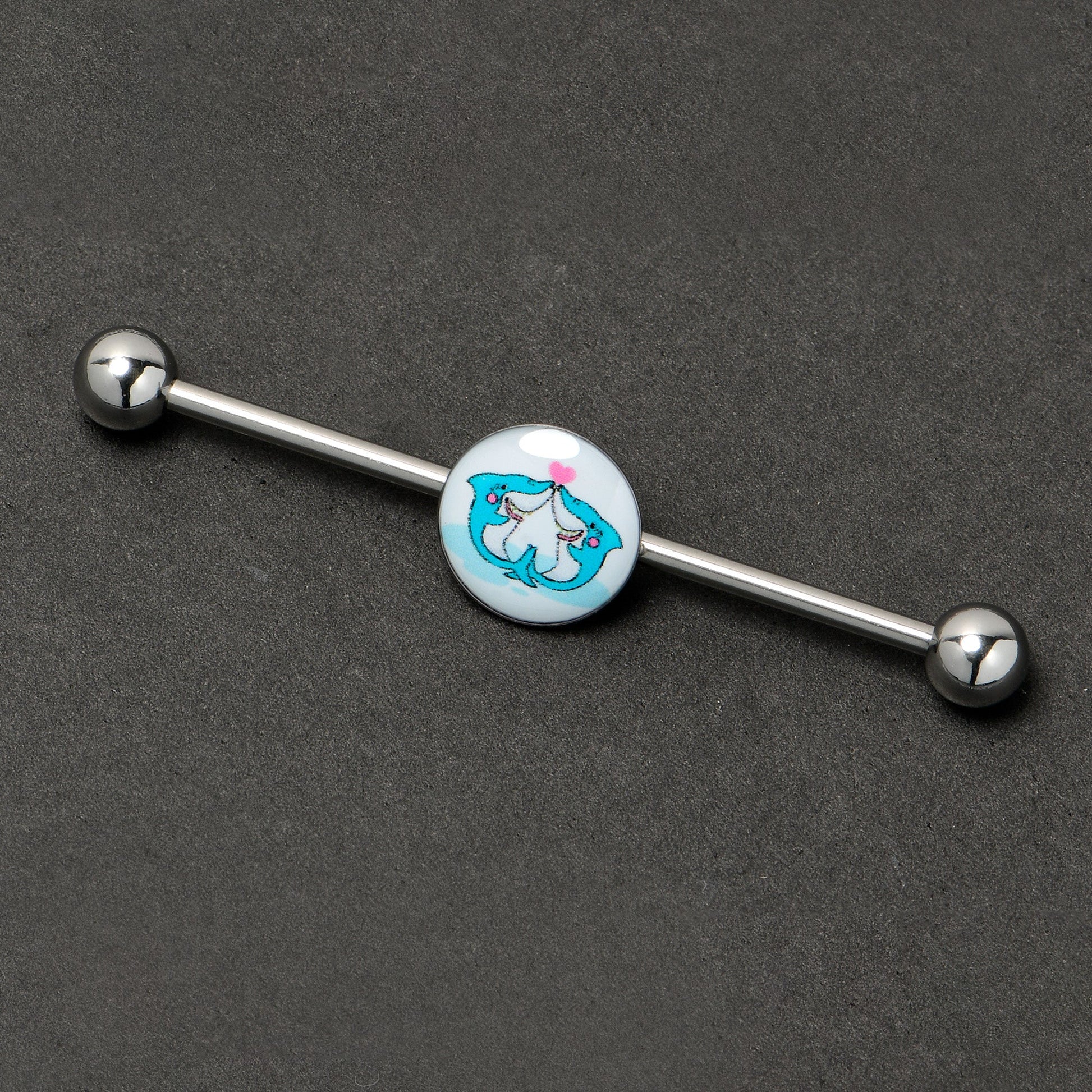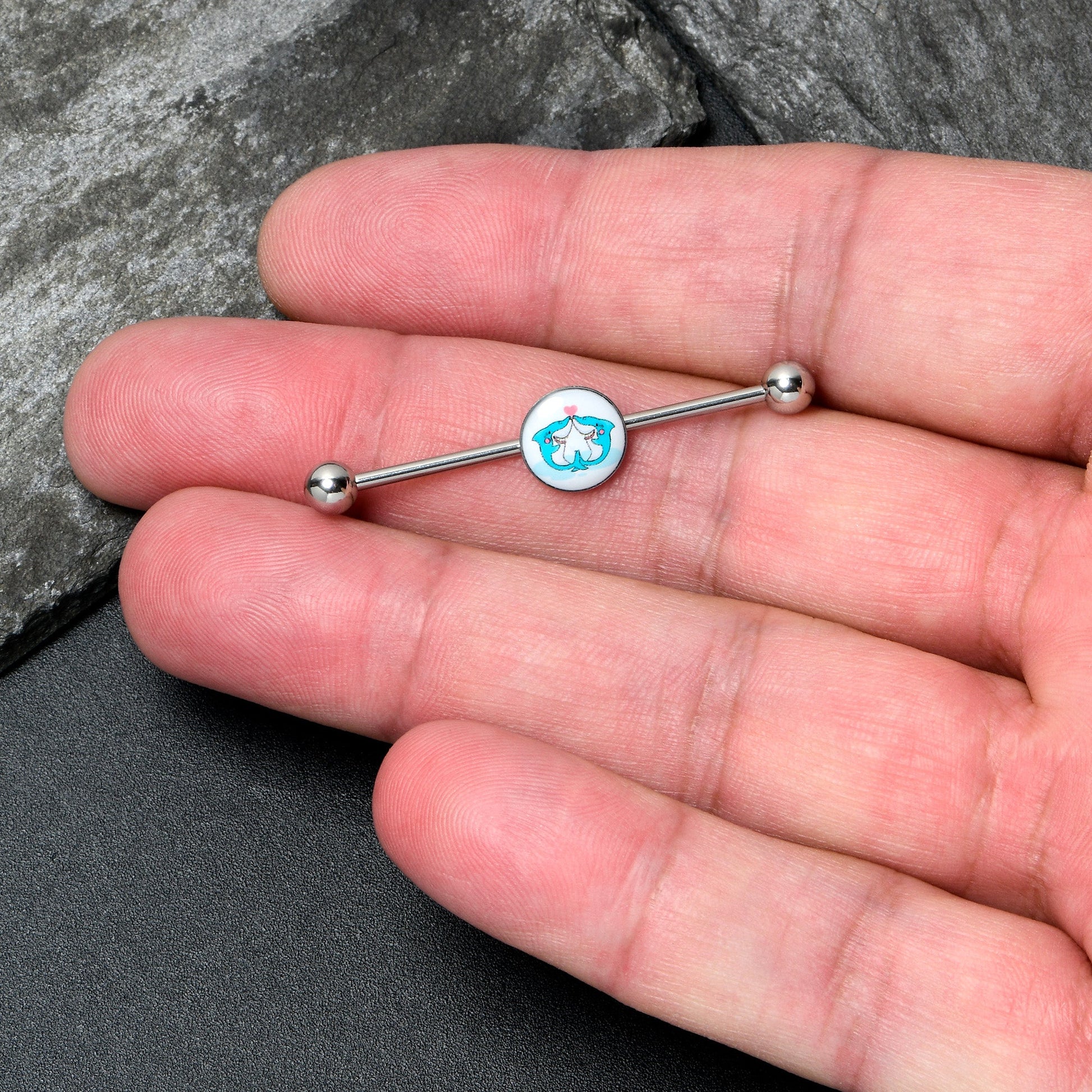 14 Gauge Loving Blue Whales Industrial Barbell 38mm