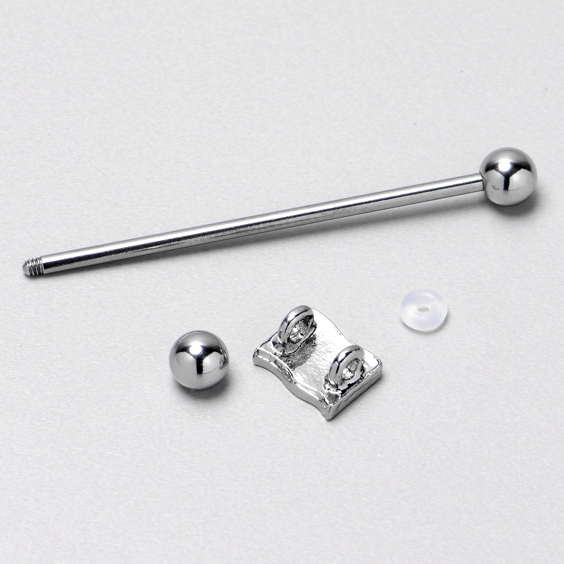 14 Gauge (1.6mm), 1 1/2" (38mm), 316L Surgical Grade Stainless Steel Straight Barbell, Moveable Charm, 5mm Ball Ends