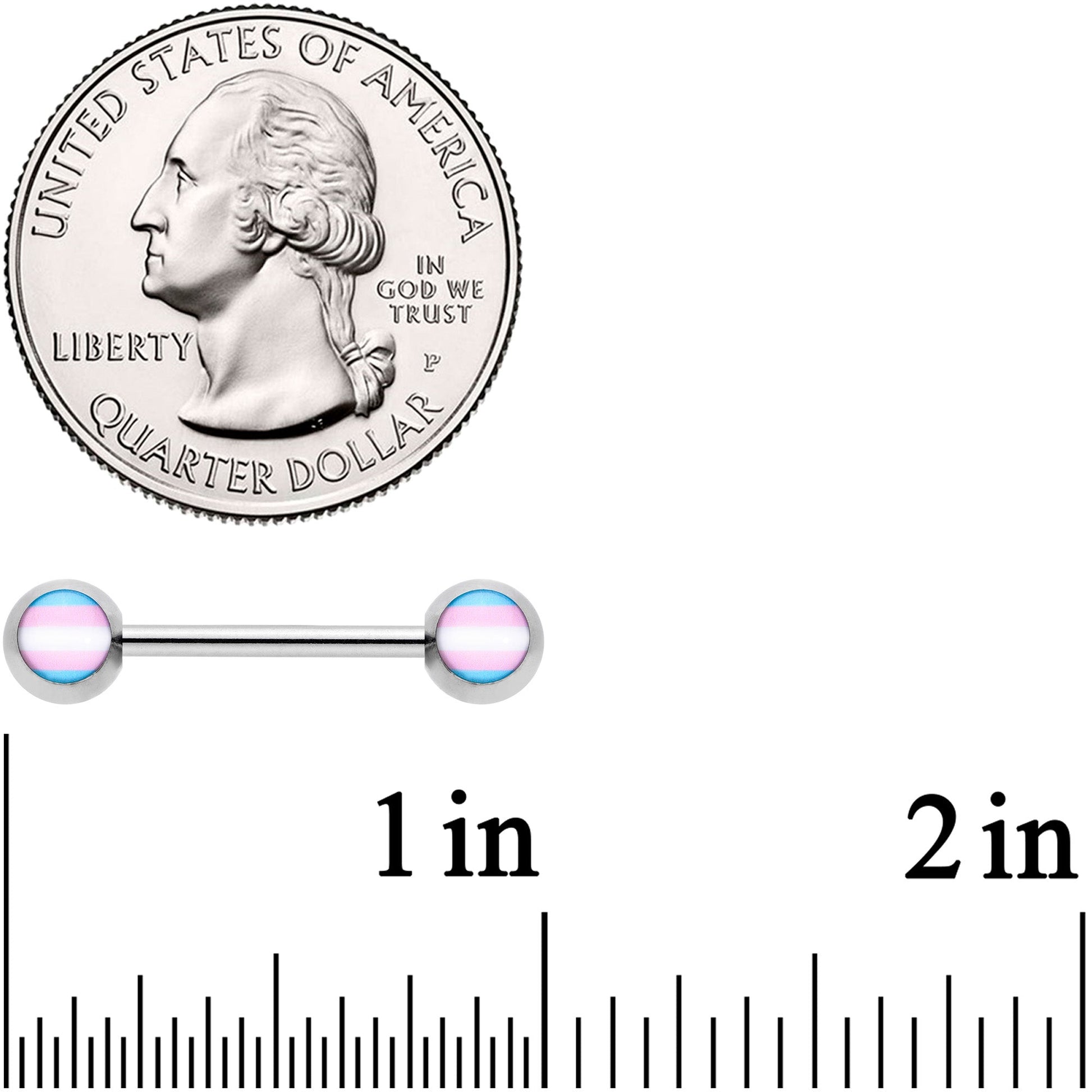 Show off your support for transgender rights when you wear this 14 gauge nipple jewelry! This pair of nipple piercings are made with 14mm durable 316L surgical grade stainless steel straight barbells and has 5mm ball ends and feature transgender pride flag inlay ball ends in pink, white, and blue so you can show your support for all. Sold as a set of two.Specifications