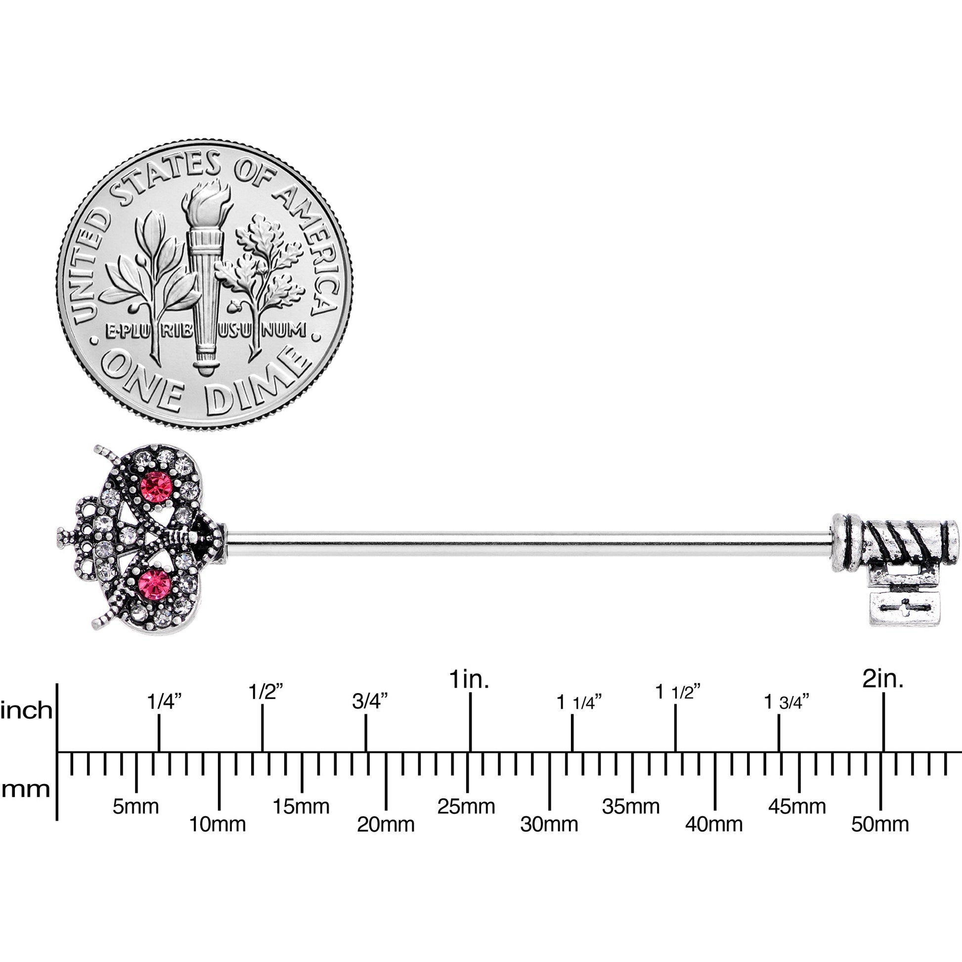 14G Pink Clear Gem Royal Owl Key Industrial Barbell 38mm