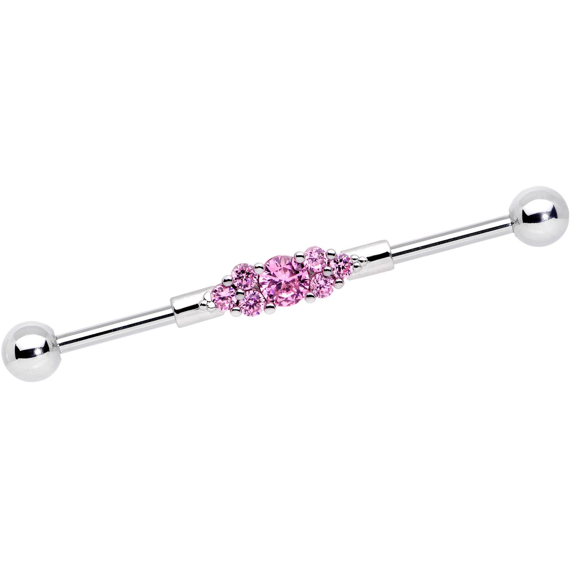 Check out this 14 gauge industrial jewelry with a little bit of eye-catching bling! Made with a 1 1/2" durable 316L surgical grade stainless steel straight barbell, this industrial piercing features a nonmoving center formed with a cluster of pink cubic zirconia gems that will look classy and catch the light, day or night!