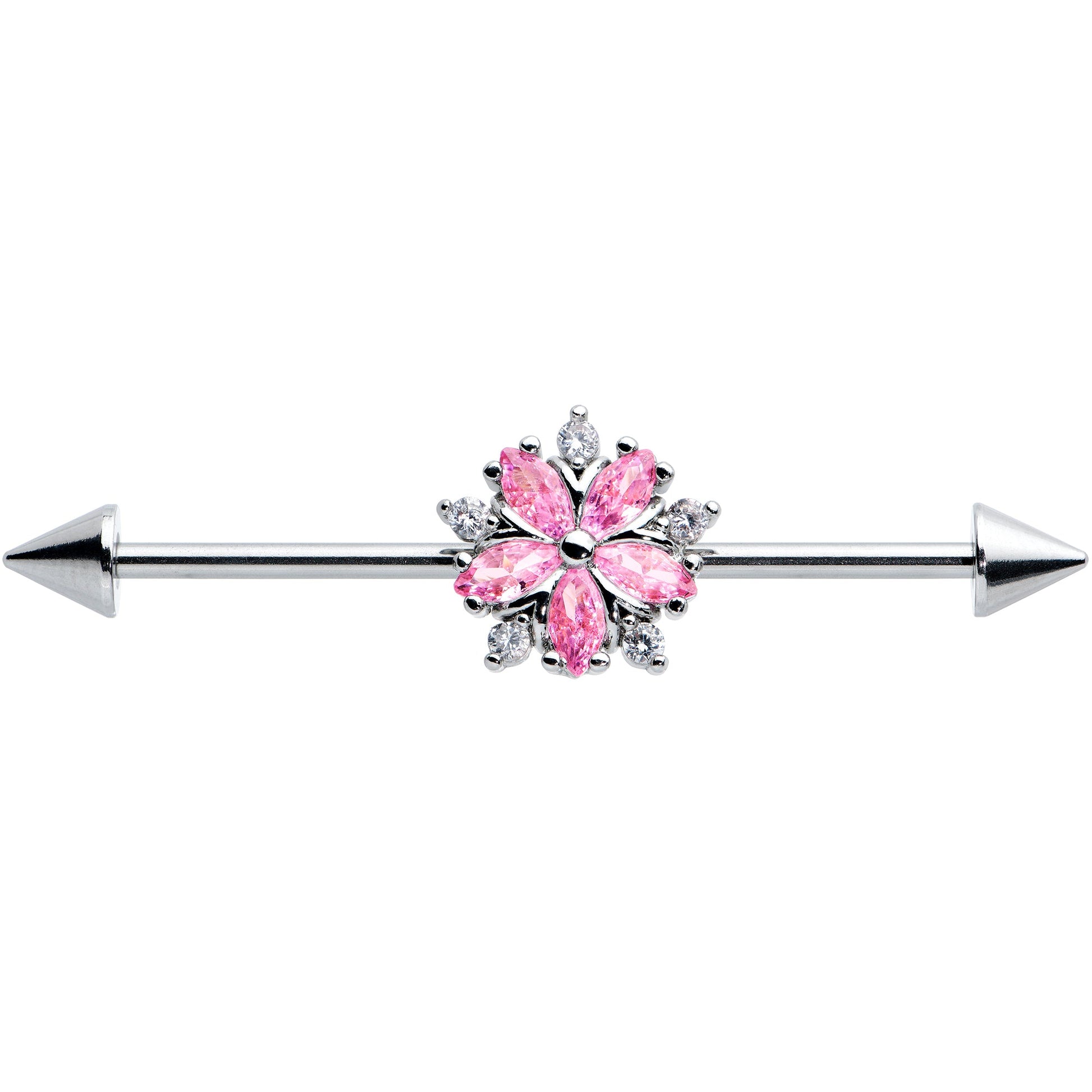 14 Gauge Pink CZ Gem Floral Baroque Burst Cone Industrial Barbell 38mm