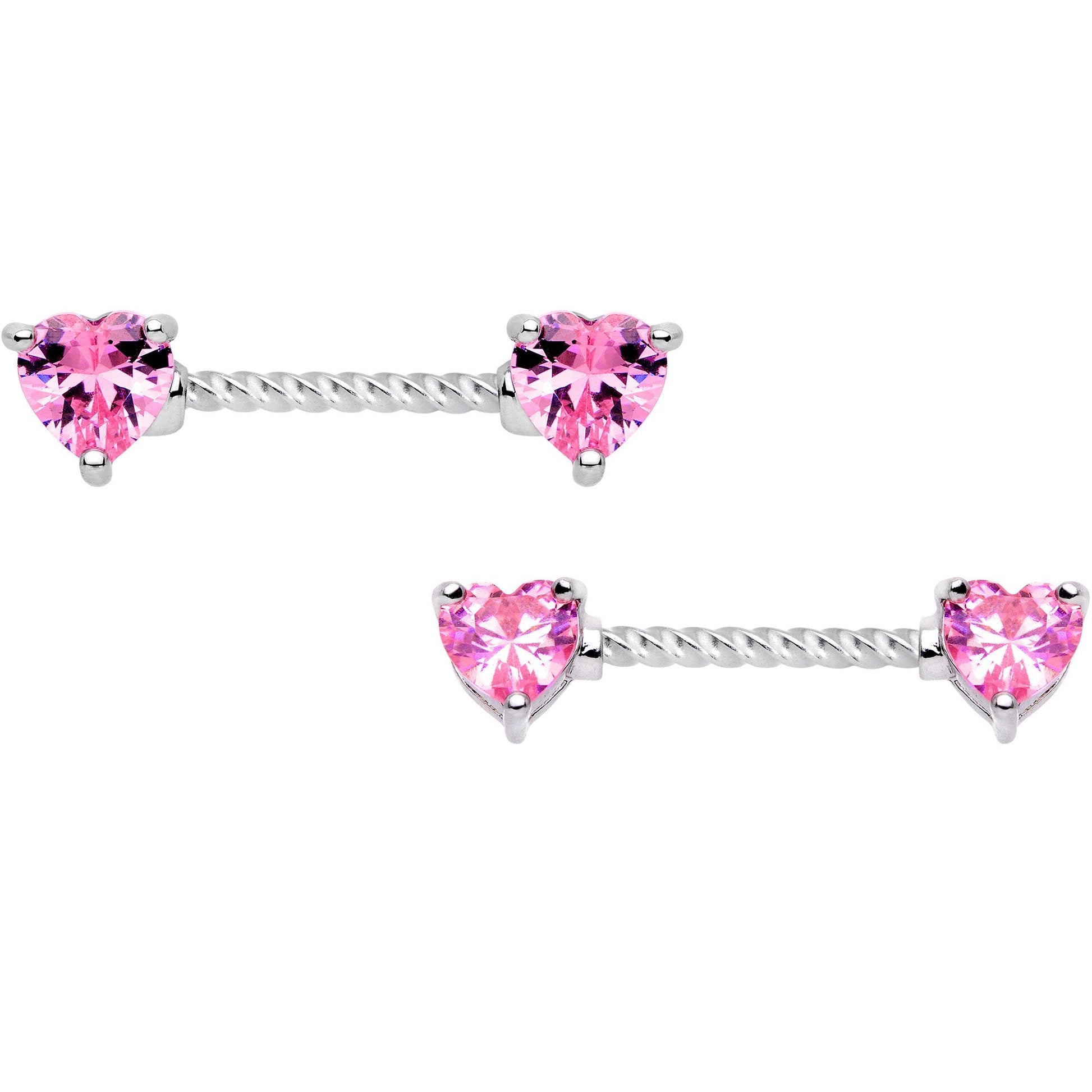 Pink CZ Gem Heart Captive Ring Twisted Straight Barbell Nipple Ring Set