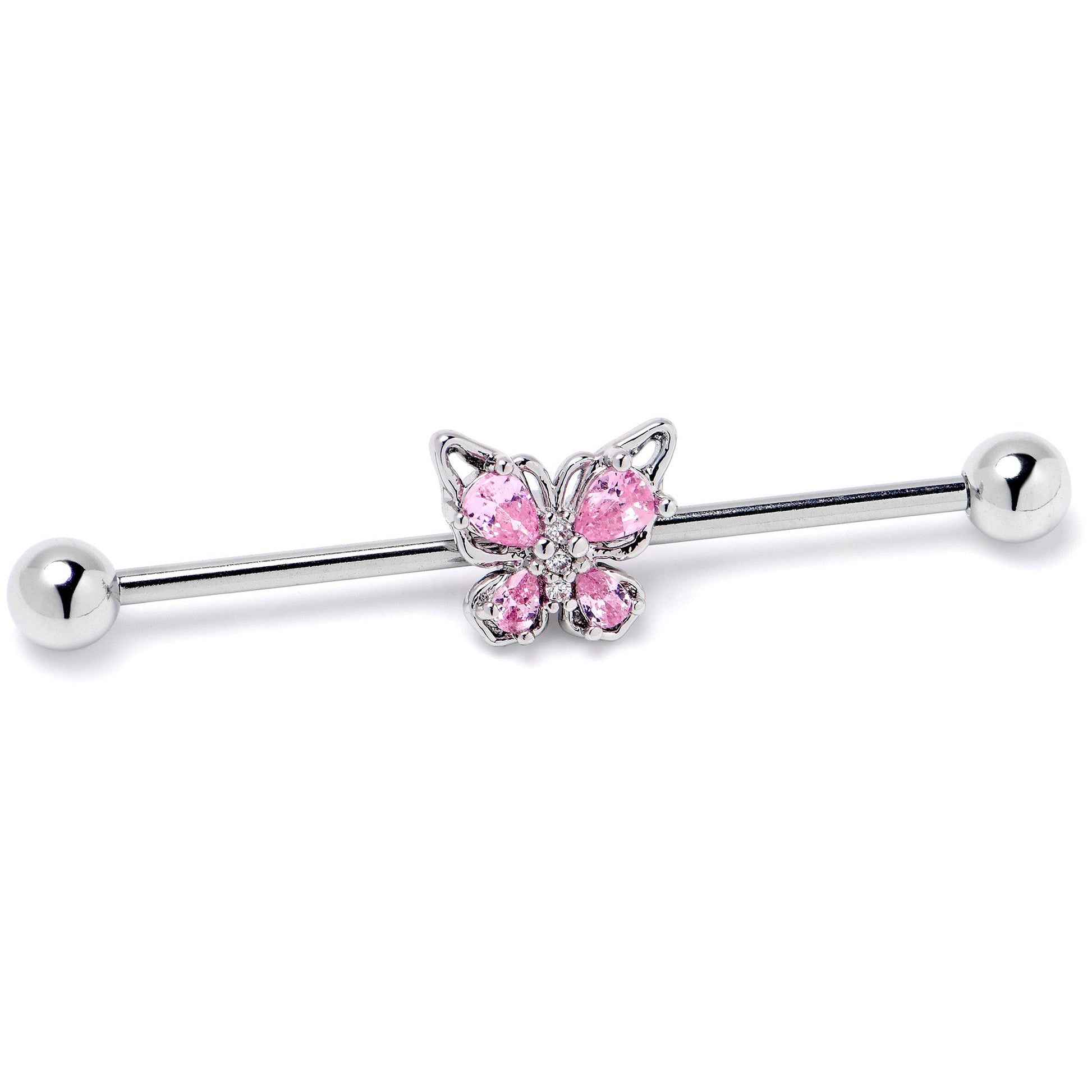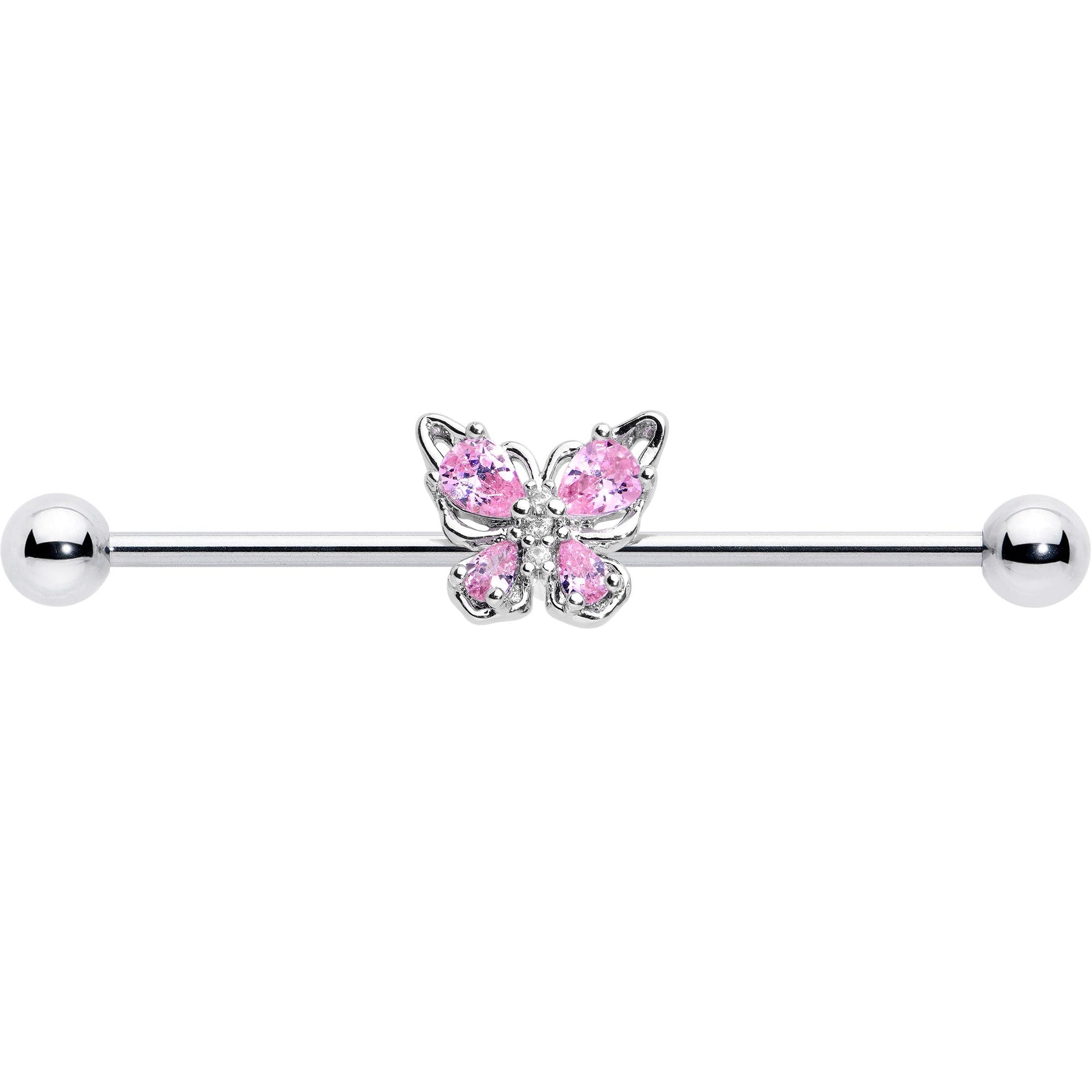 14 Gauge Pink Gem Baroque Beauty Butterfly Industrial Barbell 38mm