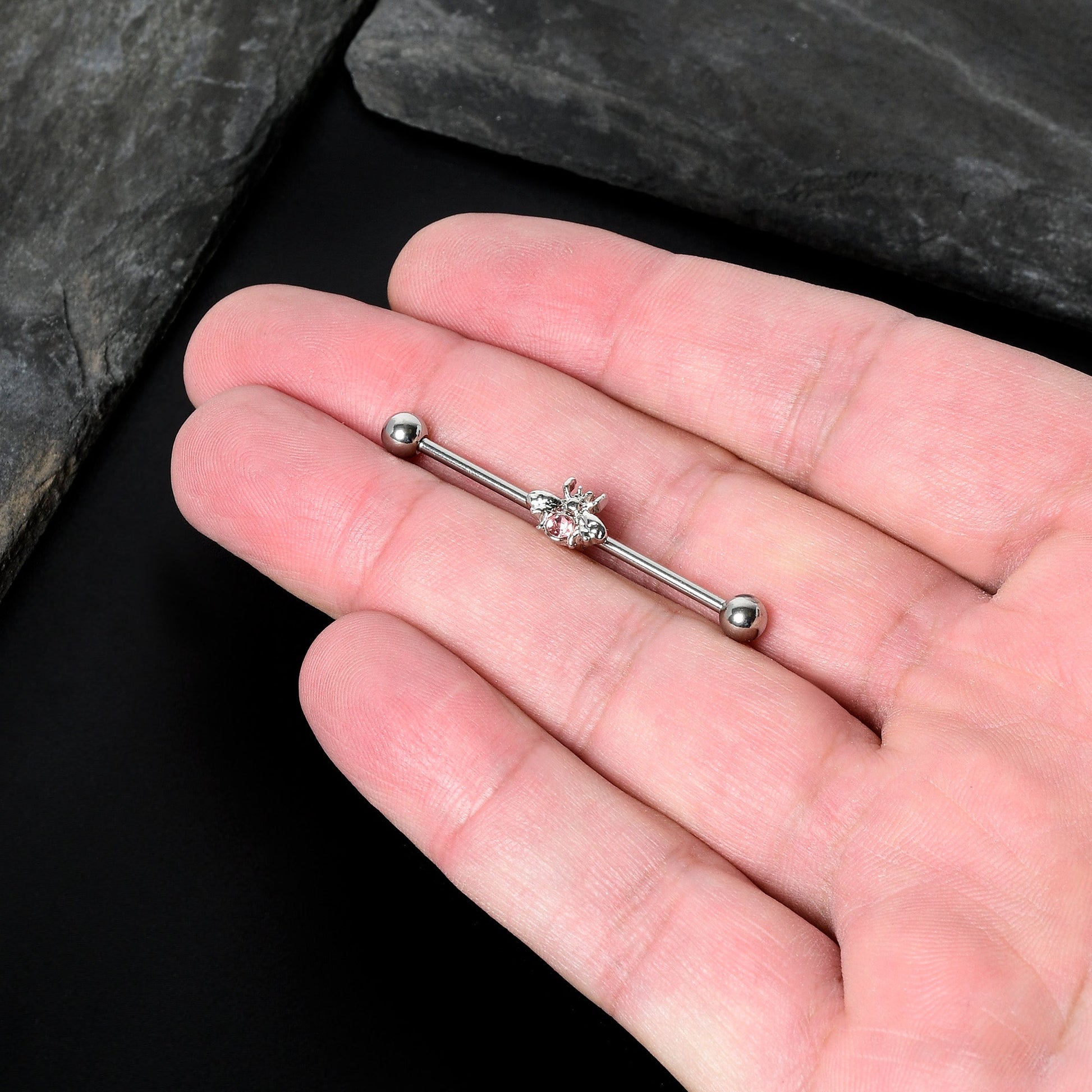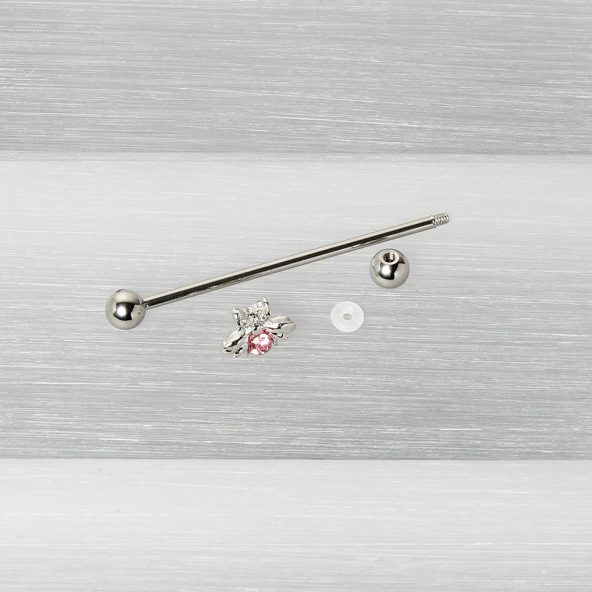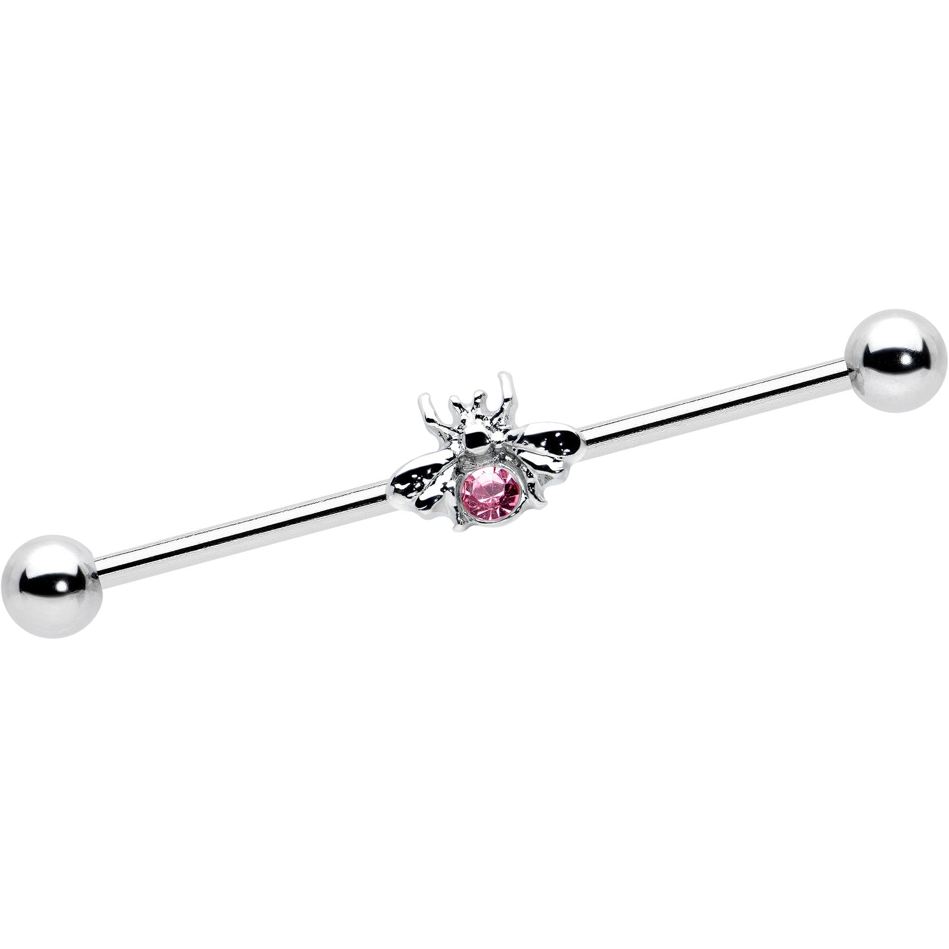 14G Pink Gem Bee Beautiful Insect Industrial Barbell 38mm