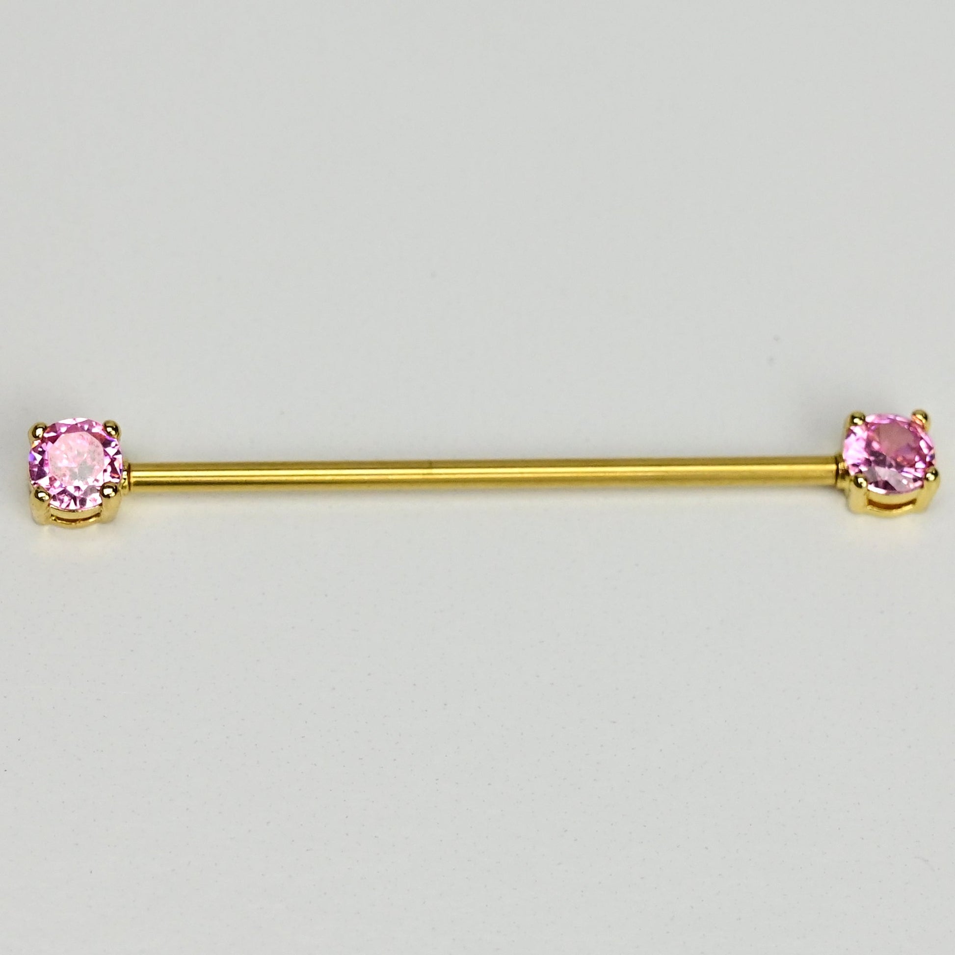 14 Gauge Pink Gem Gold Tone Internally Threaded Industrial Barbell 38mm
