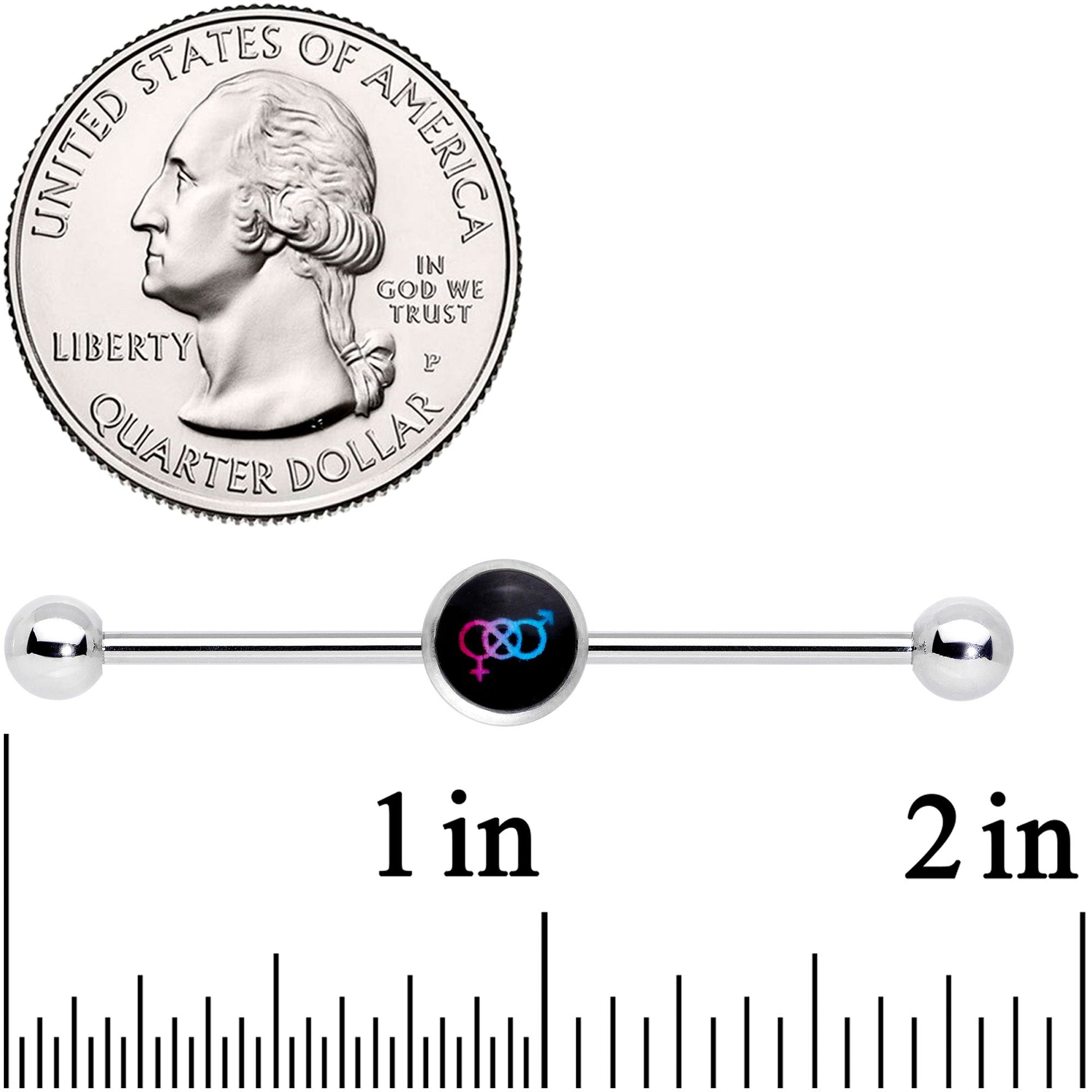 14 Gauge Pink Purple Blue Bisexual Pride Logo Industrial Barbell 38mm
