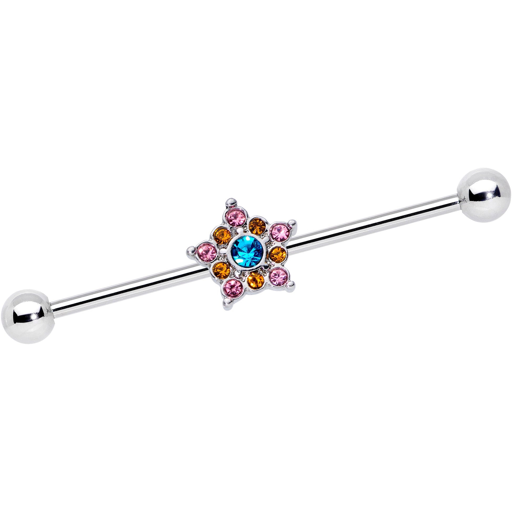 14 Gauge Pink Yellow Blue Gem Showy Star Industrial Barbell 38mm