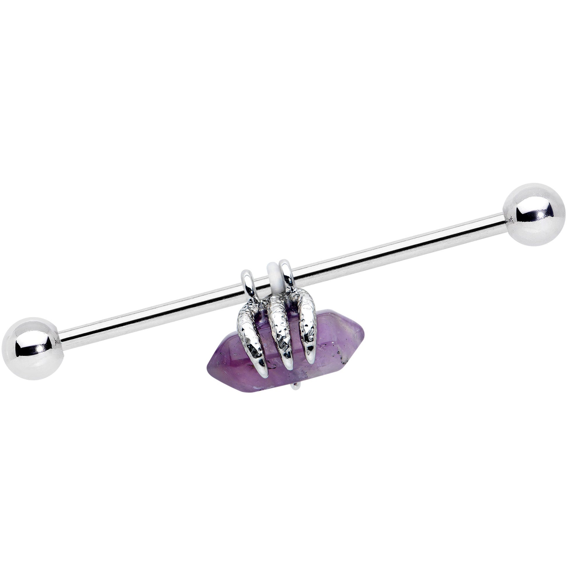 14 Gauge Purple Amethyst Claw Industrial Barbell 38mm