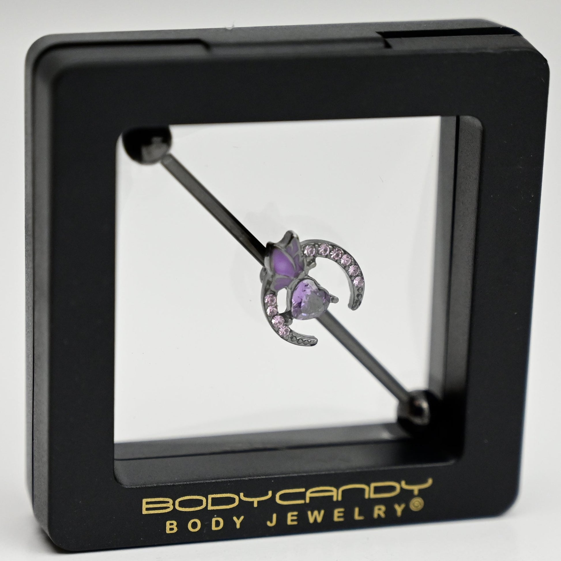 14 Gauge Purple Gem Black Moon Butterfly Heart Industrial Barbell 38mm