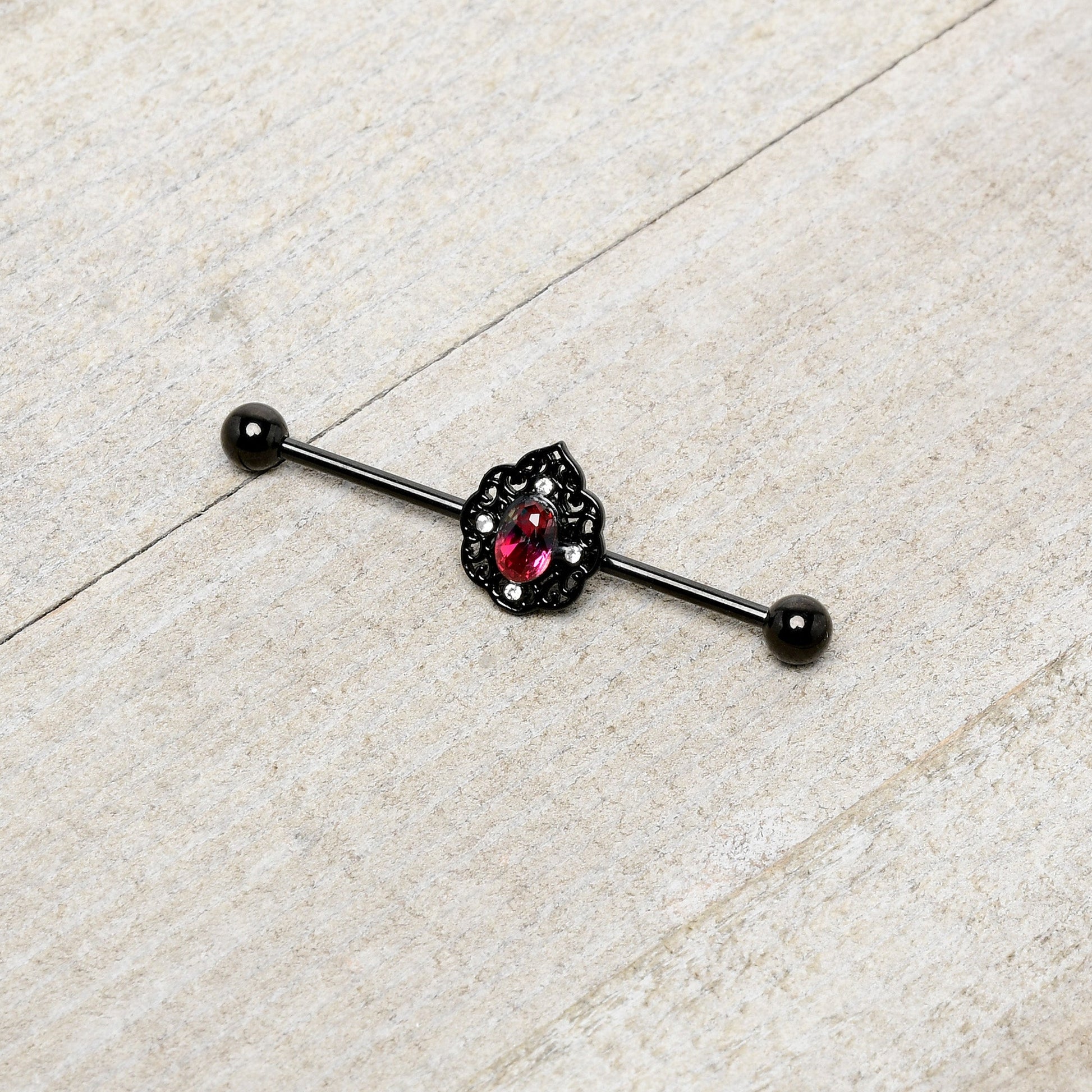 14 Gauge Purple Tourmaline Black Lacy Drop Industrial Barbell 38mm