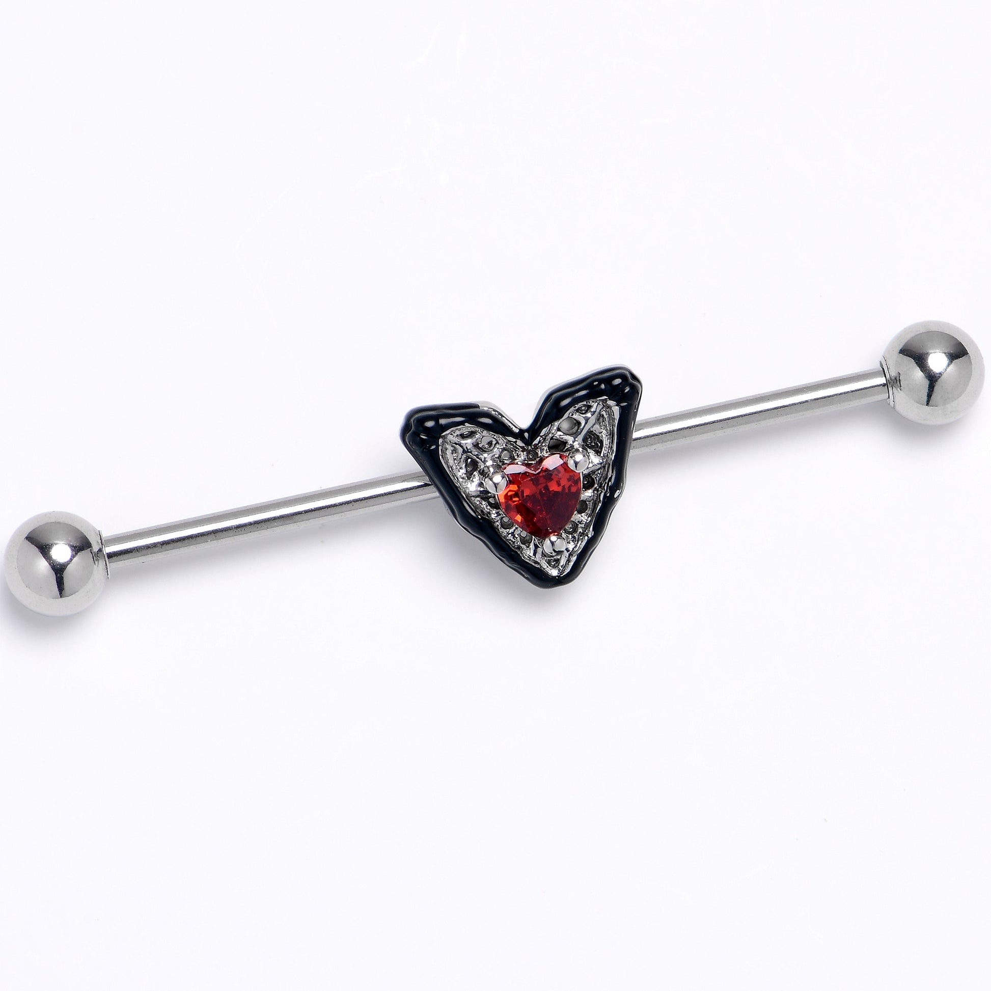 14G Red CZ Gem Captured Heart Industrial Barbell 38mm