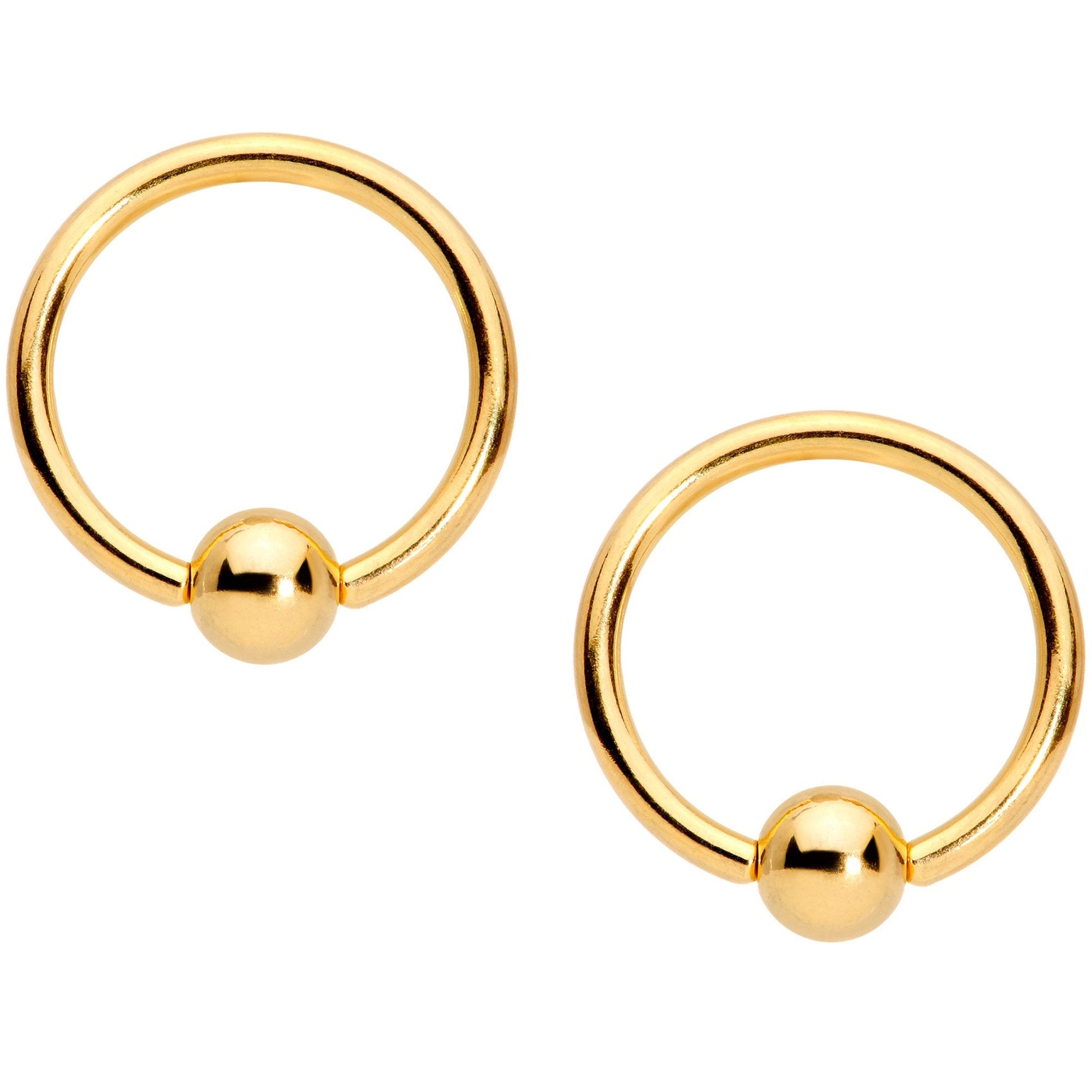 14 Gauge (1.6mm), 9/16" (14mm) Gold Tone Plated over 316L Surgical Grade Stainless Steel Straight Barbells, 5/16" (8mm) Gold Tone Plated over 316L Surgical Grade Stainless Steel Circular Rings, Sold as a Set of 4