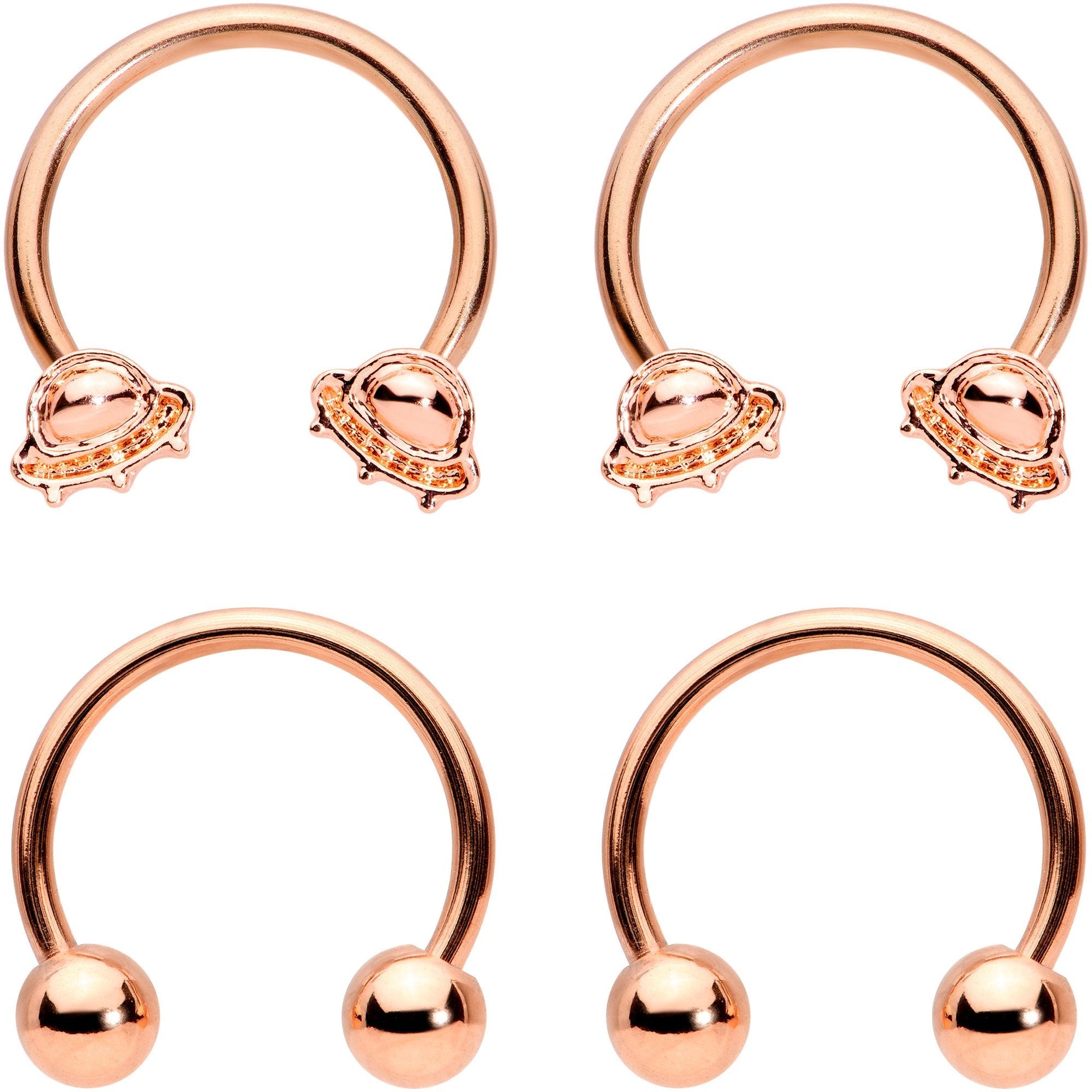14 Gauge Rose Gold Tone Outer Space UFO Horseshoe Nipple Ring Set of 4