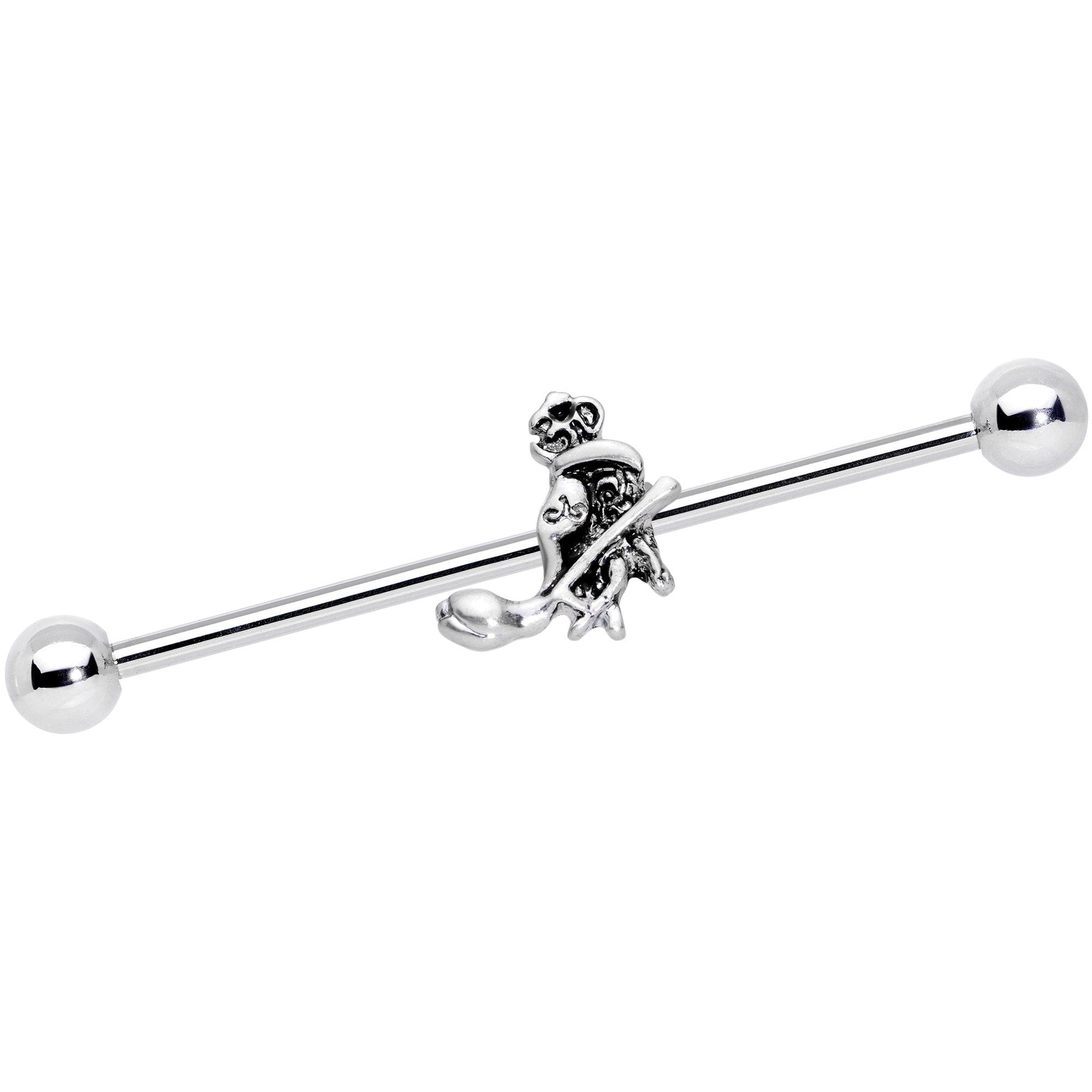 The sacred hand wishes to bring you peace, but it also comes bearing a flower for you as well. The moveable charm features exactly that in finely crafted detail. It rests upon a 1 1/2" long durable 316L surgical grade stainless steel barbell with 5mm ball ends. Everyone loves getting flowers but this 14 gauge industrial barbell also is said to protect the wearer from evil...and who doesn't need more of that in their life?Specifications