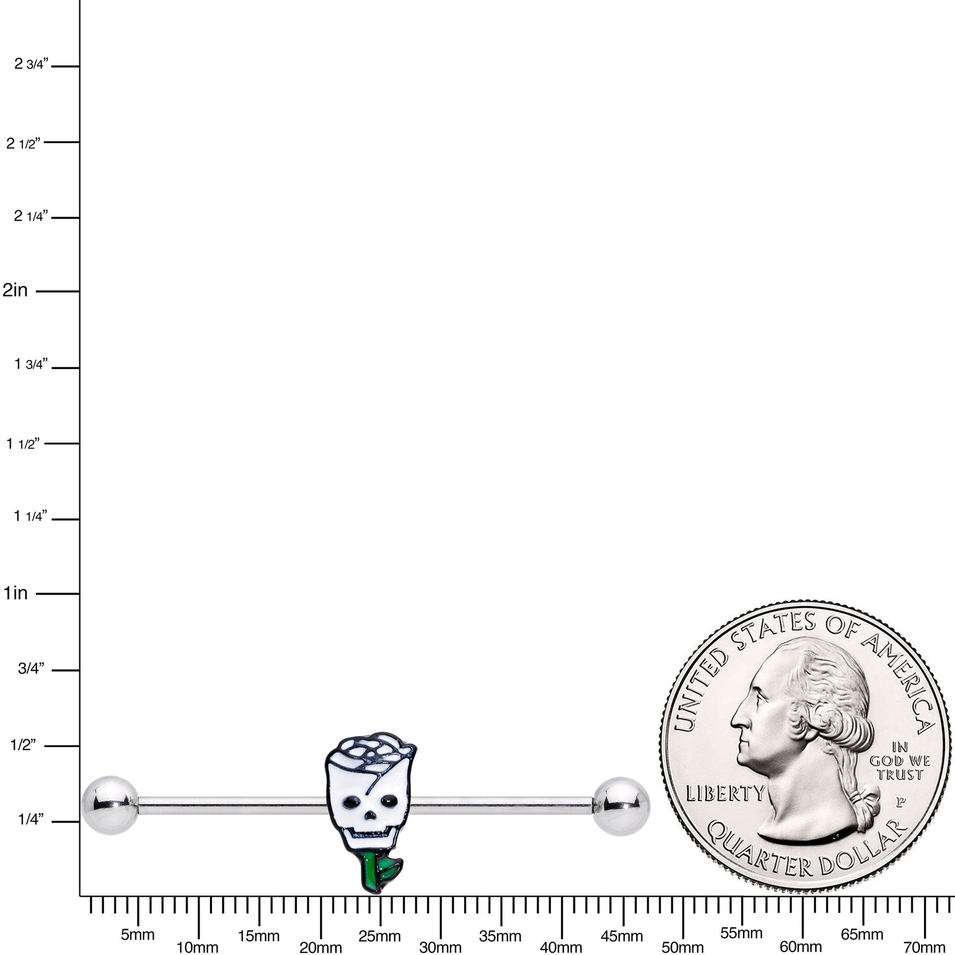 14 Gauge Skull White Rose Valentines Industrial Barbell 38mm