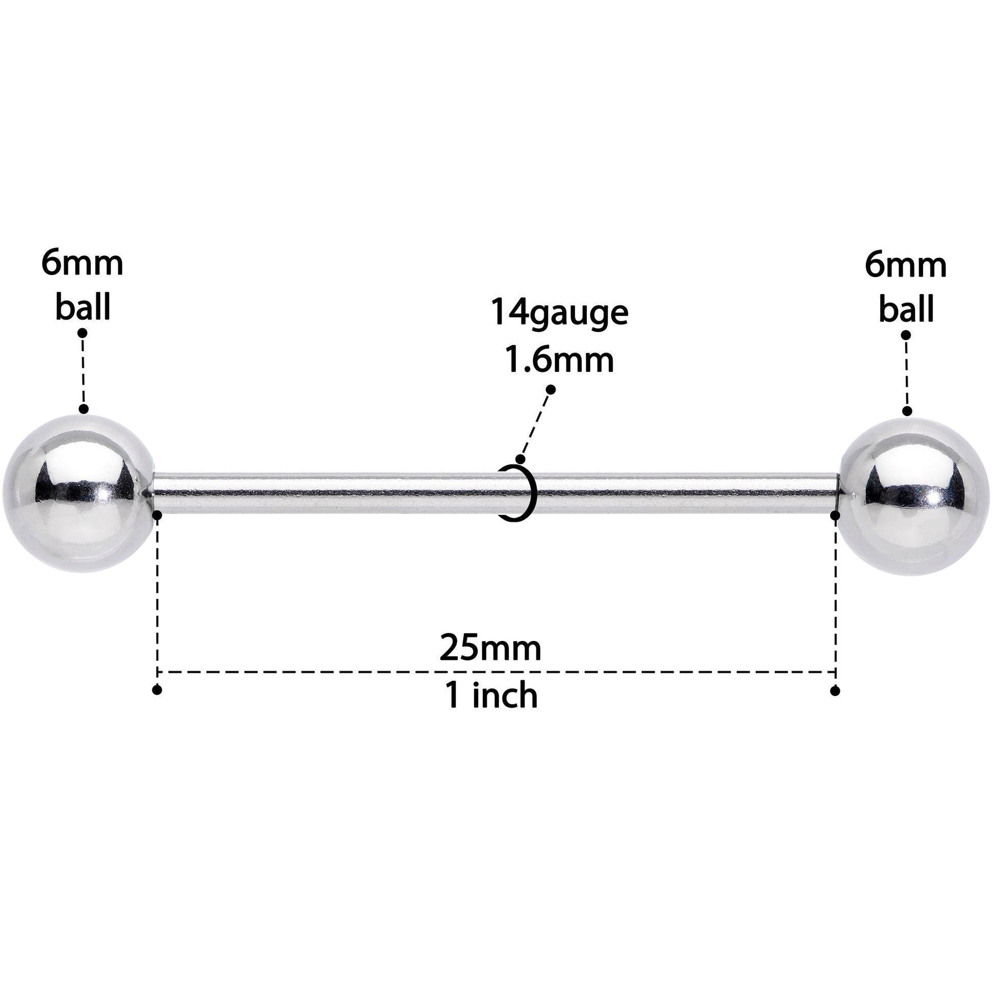 14 Gauge (1.6mm), 1" (25mm), 316L Surgical Grade Stainless Steel Straight Barbell, 6mm Ball Ends