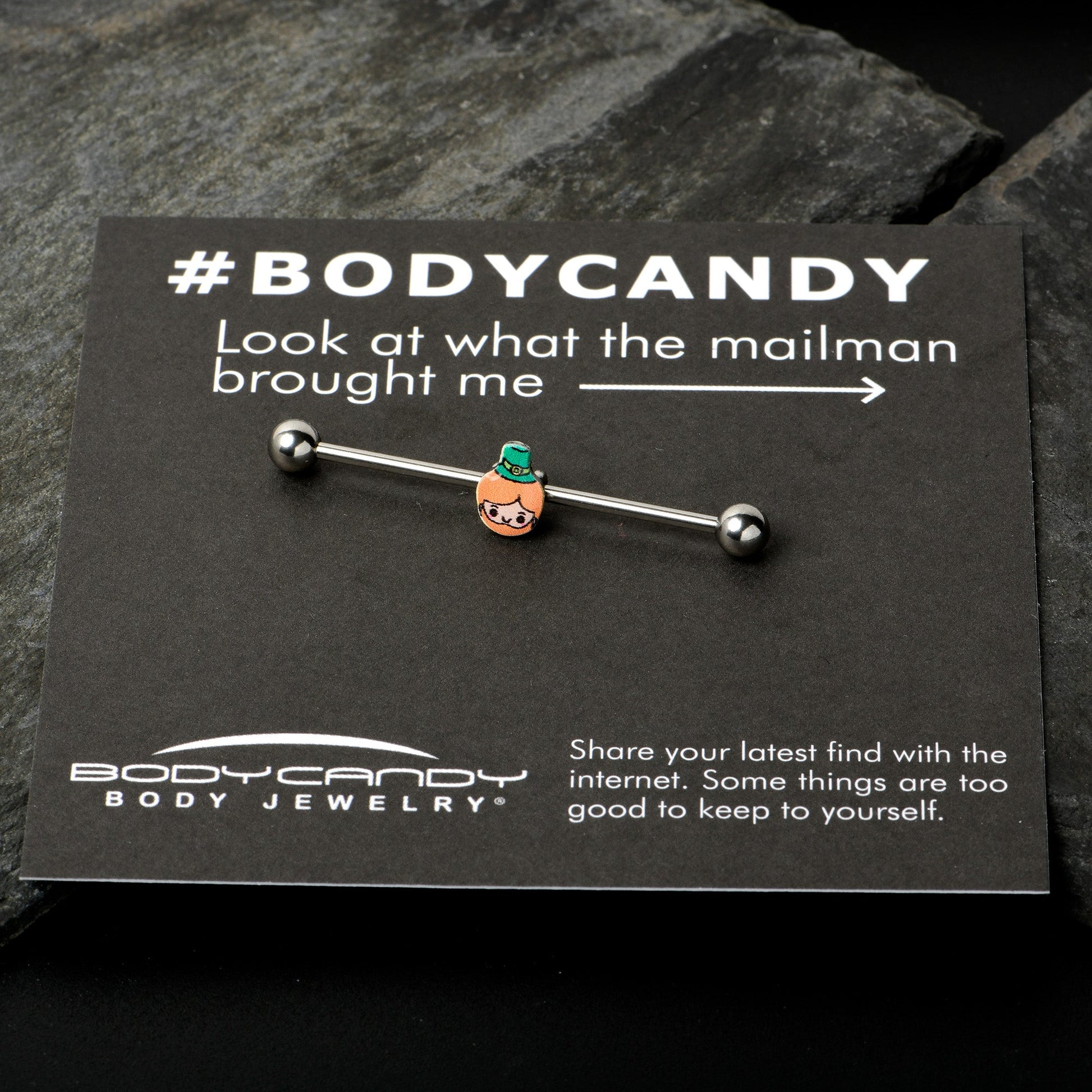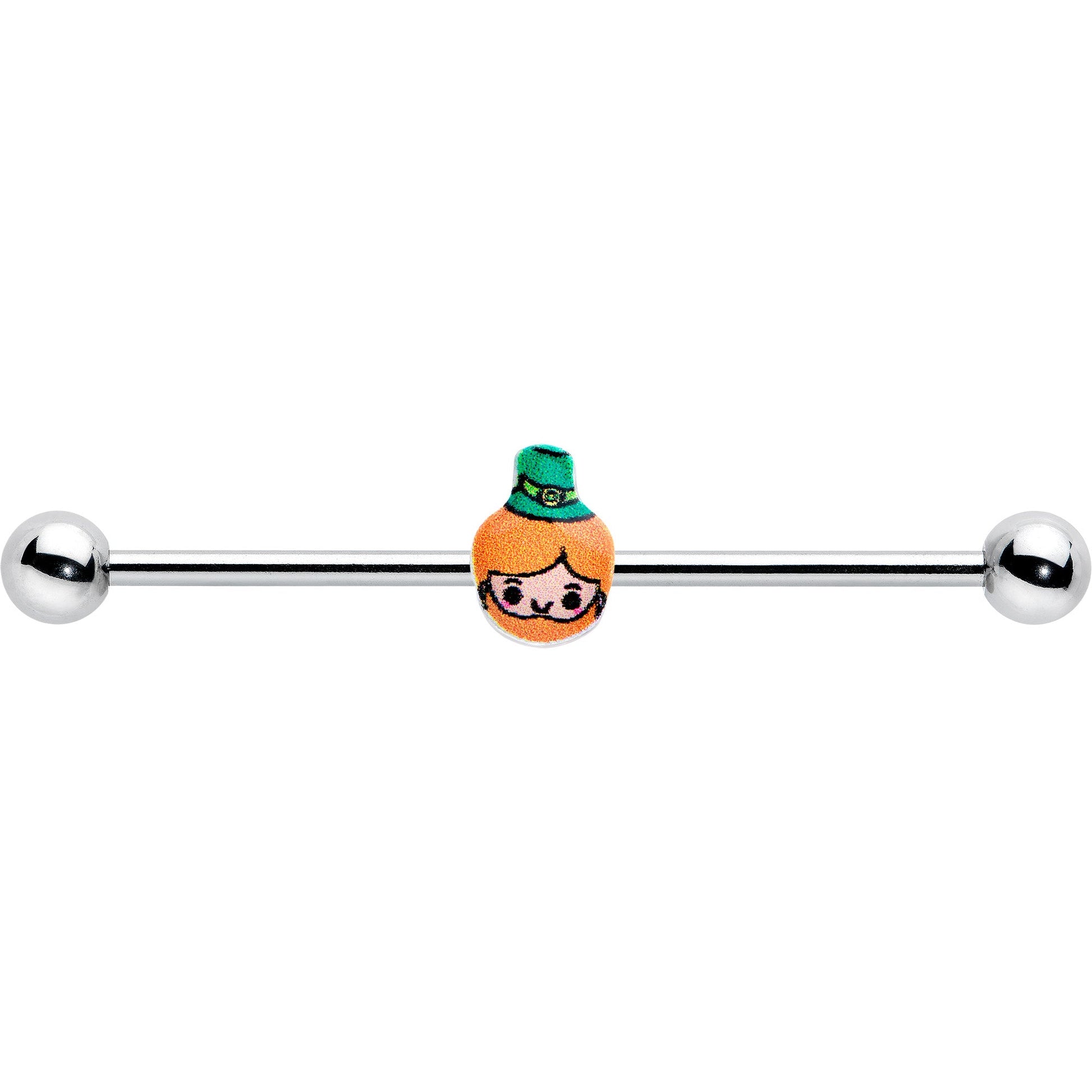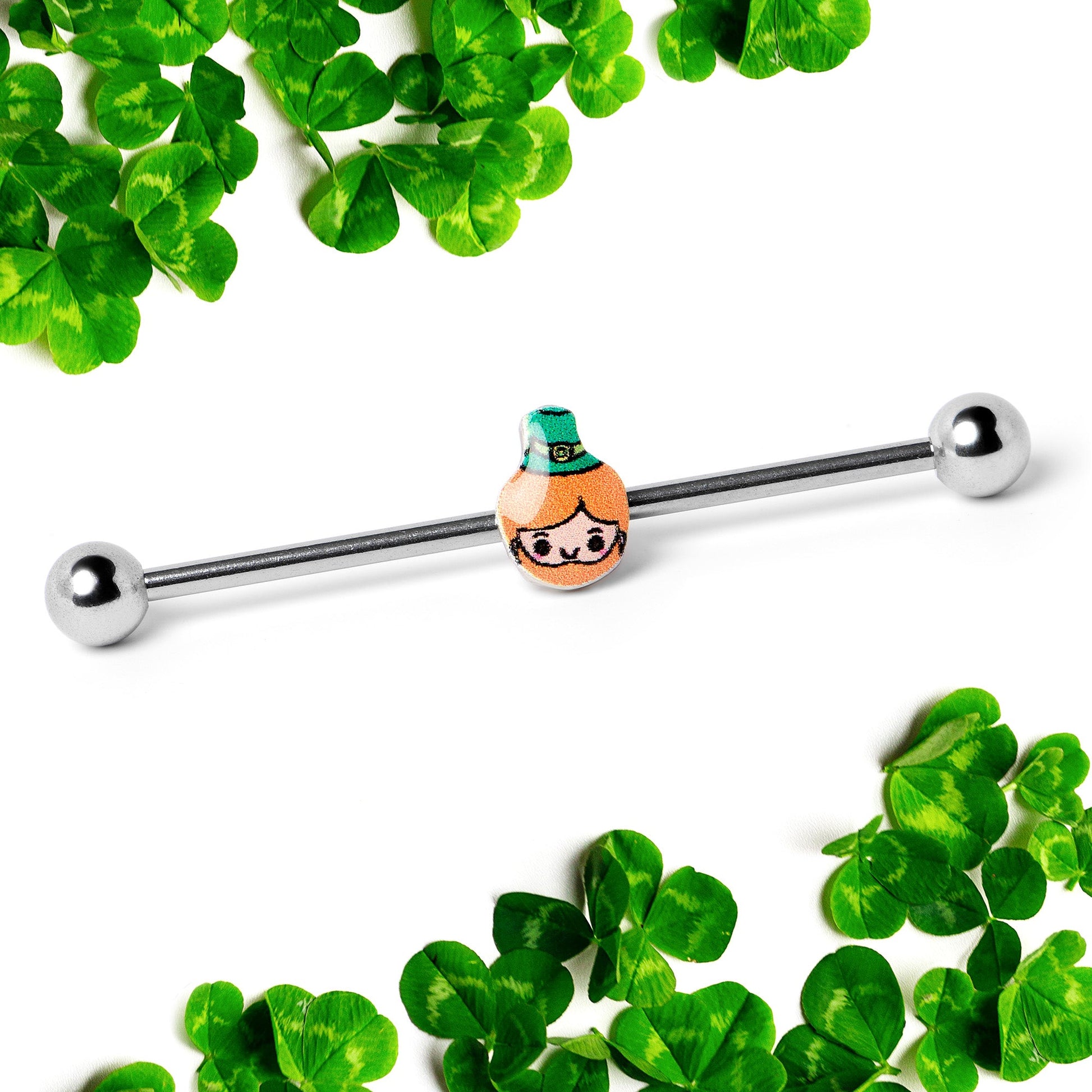14G Sweet Happy Leprechaun St Patricks Industrial Barbell 38mm