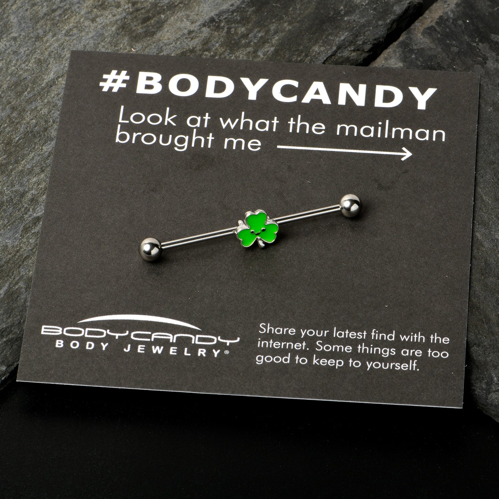 14G Sweet Happy Shamrock St Patricks Industrial Barbell 38mm
