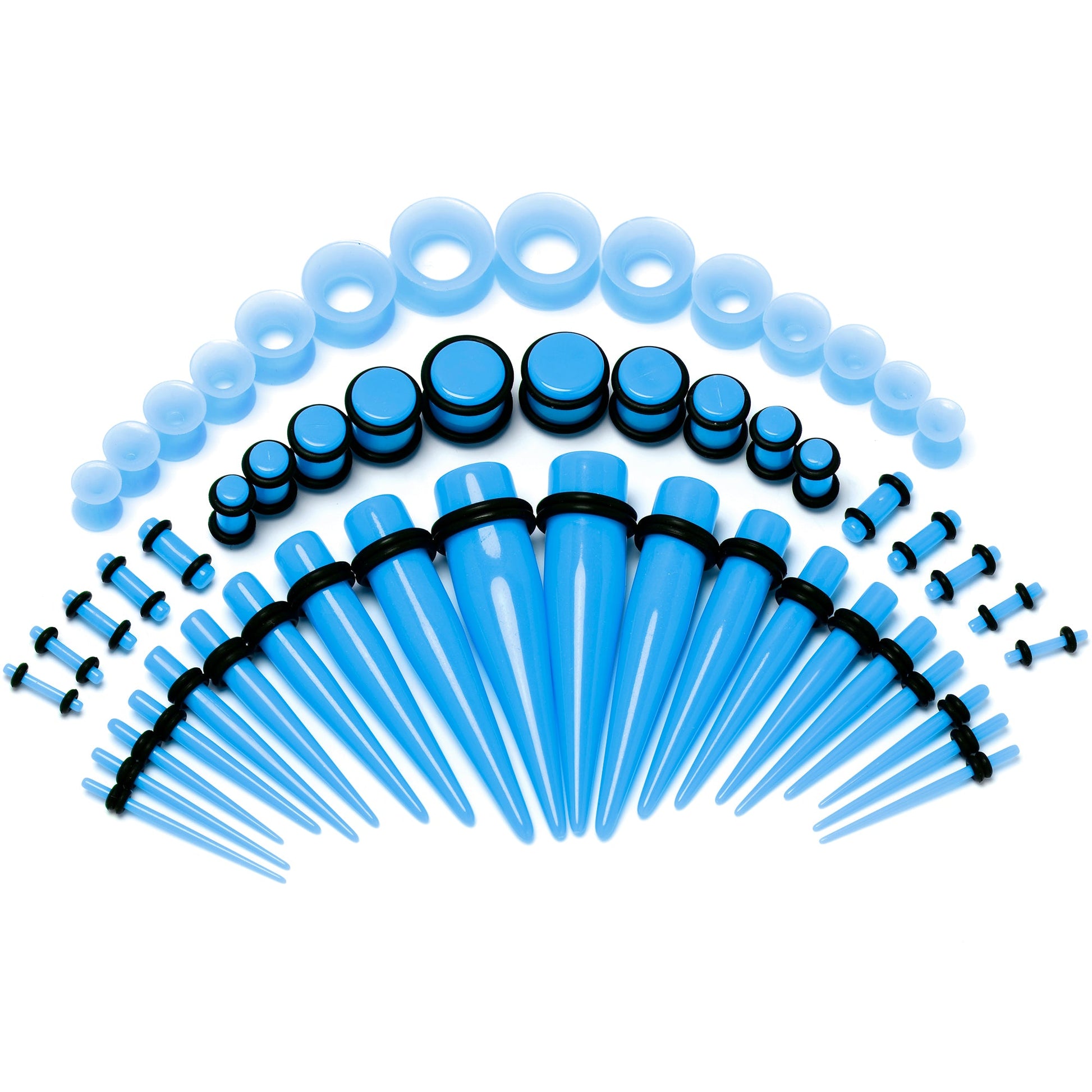 14G to 1/2 Blue Acrylic 54 Piece Ear Stretching Kit with Jojoba Oil