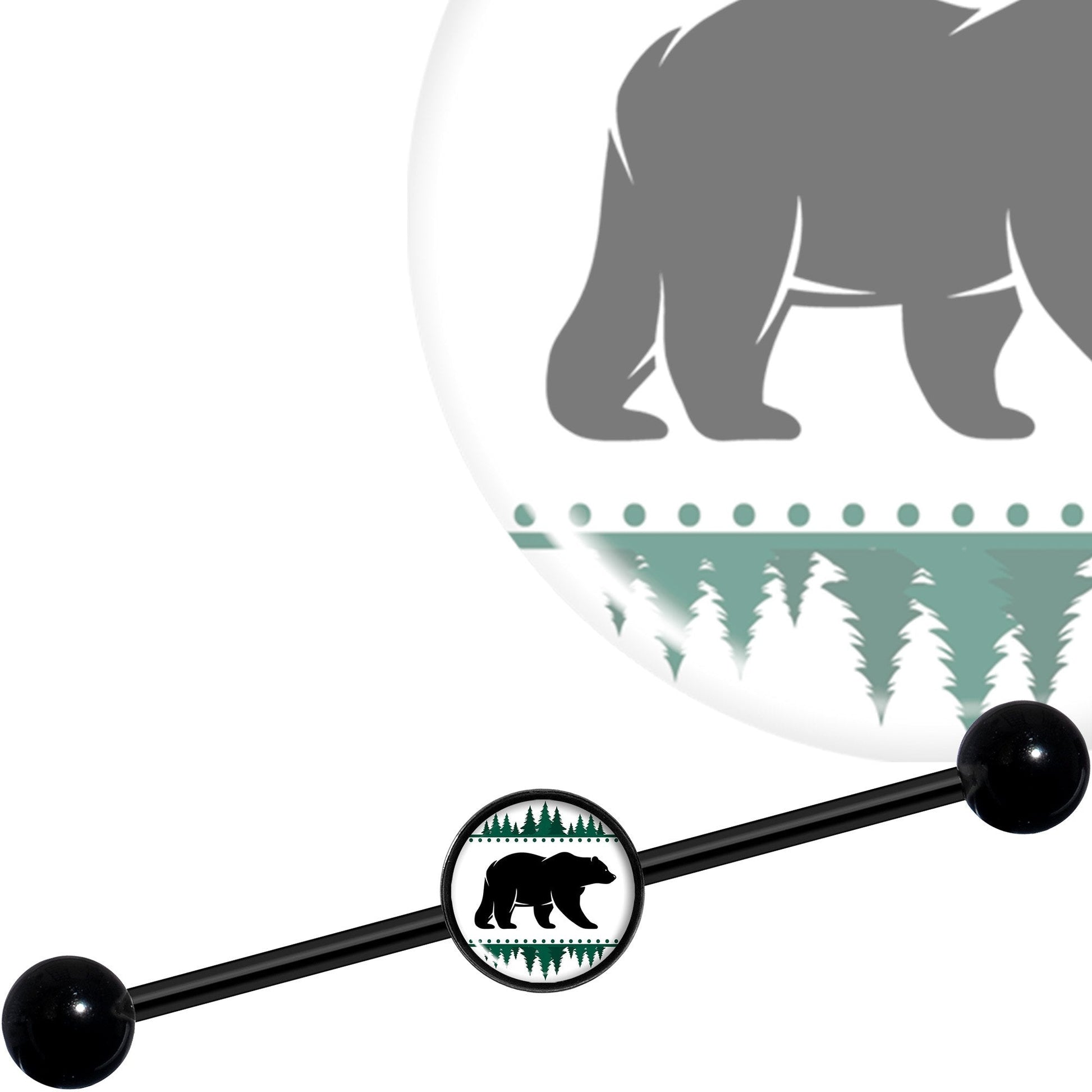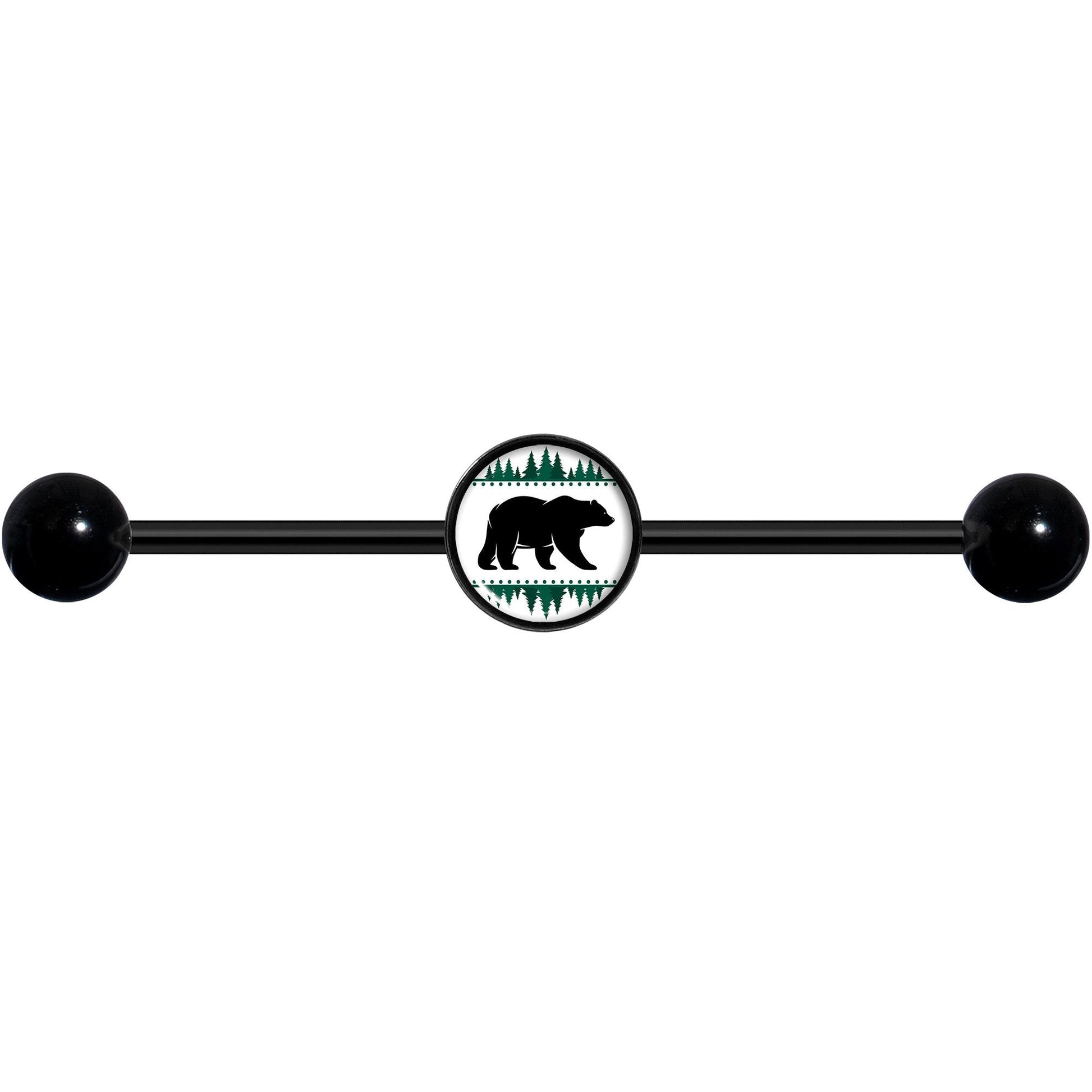 14G Winter Polar Bear in Woods Black Industrial Barbell 37mm