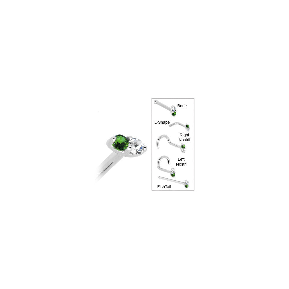 The post styles are available in both 18 and 20 gauge in a nose bone, nostril screw for either right or left, as well as a straight fish tail. Prices range from 57.99 to 64.99 based on the gauge and style selected.