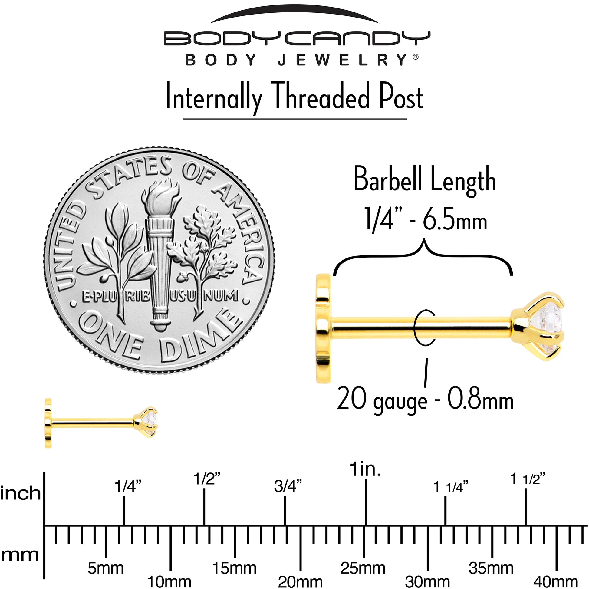 14k Yellow Gold Flat Back Earring 20G 2mm CZ Floral Reversible