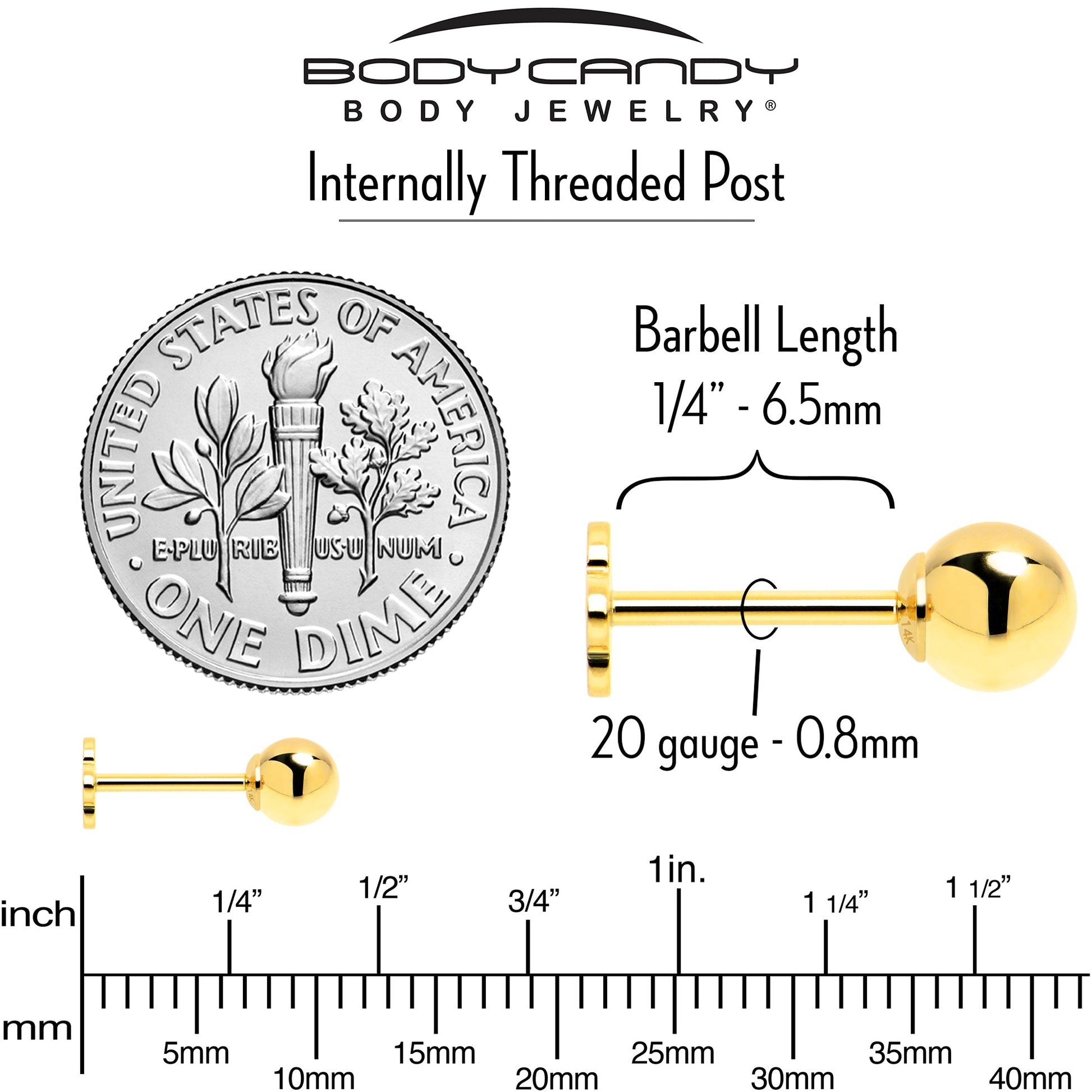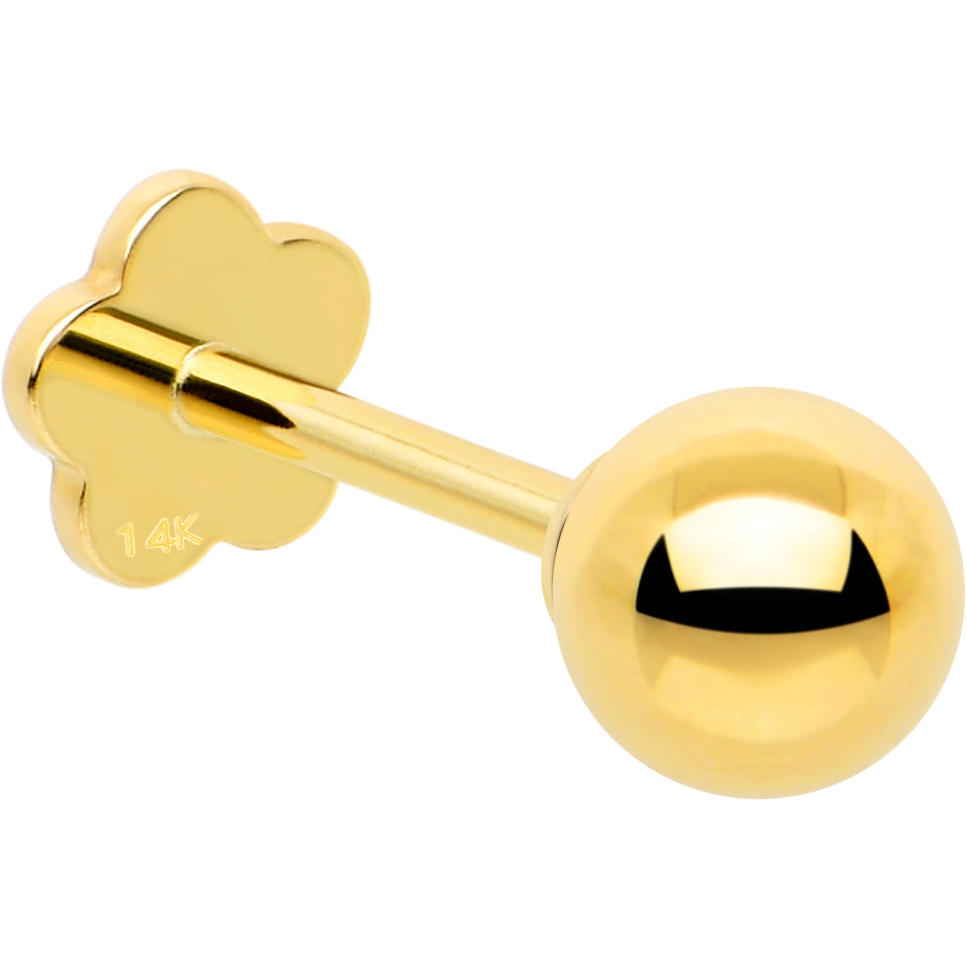 20 Gauge (.8mm), 1/4" (6.5mm) Length Post, Solid 14k Gold, Internally Threaded, Flower Flat Back, 4mm Ball End