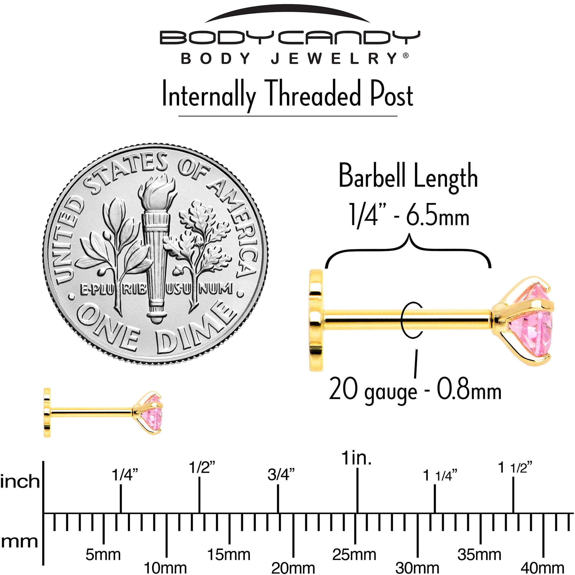 14k Yellow Gold Flat Back Earring 20G 4mm Pink CZ Floral Reversible