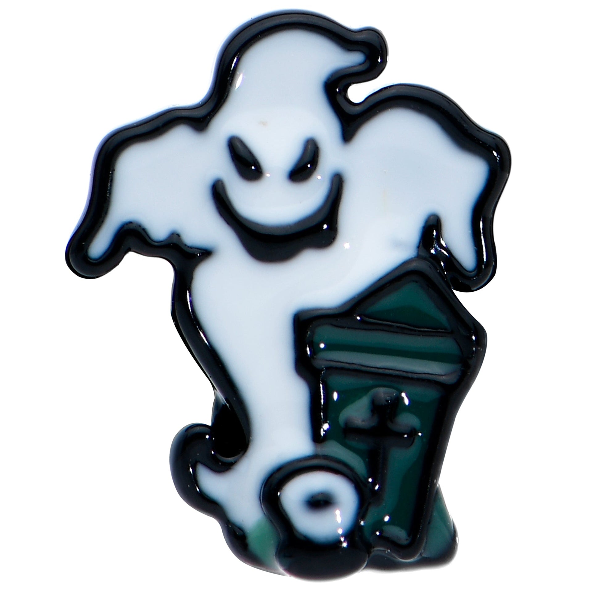 What better place for a ghost than a graveyard....or this 16 gauge tragus stud? It's made with a 6mm black plated over 316L surgical grade stainless steel straight barbell with a 4mm ball end. It features a white ghost charm with a wicked smile, lurking behind a dilapidated looking tombstone. In front of the ghost is a tiny Grim Reaper. You can rock this devious duo in multiple piercings including helix, tragus, and some conch piercings. This Halloween, grab some grim and gorgeous cartilage jewelry with this marvelously morbid cartilage stud!Specifications