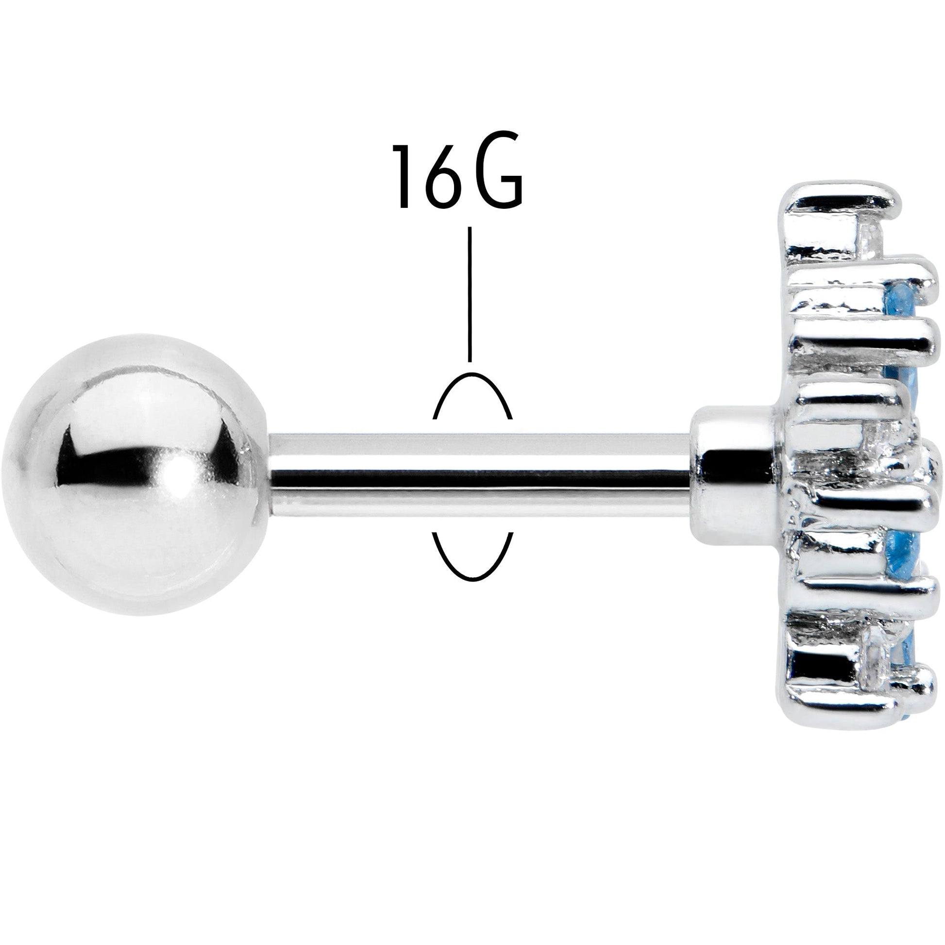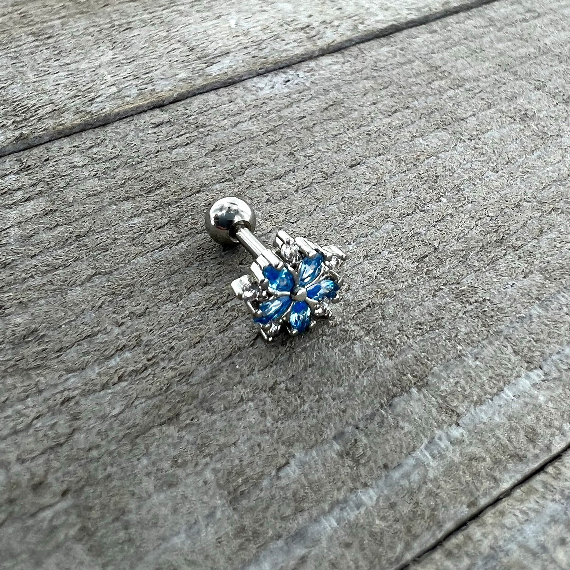 16G 1/4 Blue CZ Gem Floral Burst Cartilage Tragus Earring