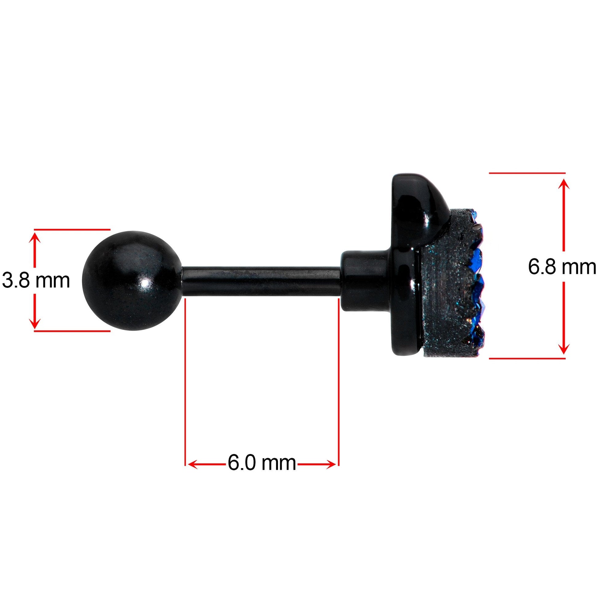 16 Gauge (1.2mm), 1/4" (6mm), Black Plated over 316L Surgical Grade Stainless Steel Straight Barbell, Faux Druzy, 3mm Ball End