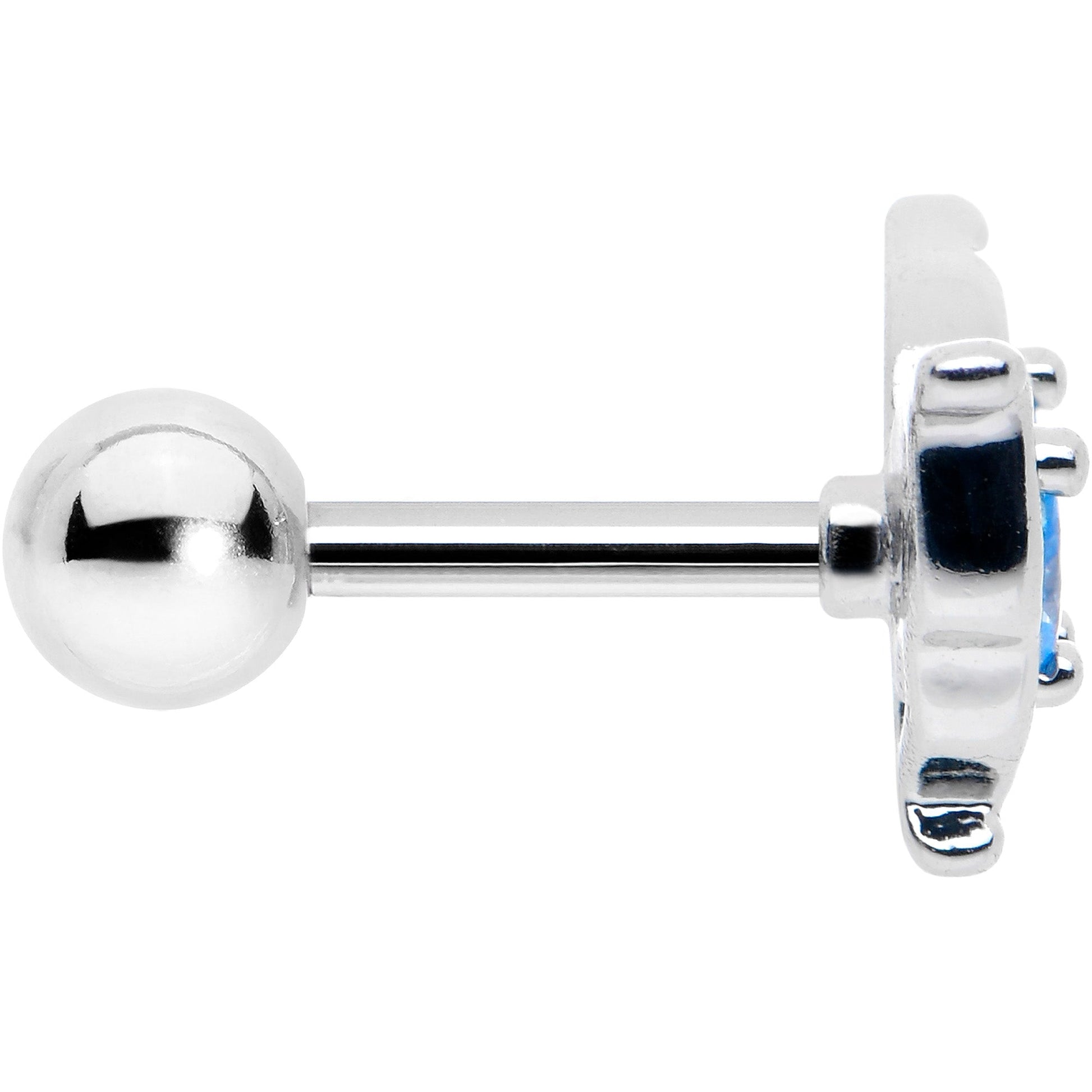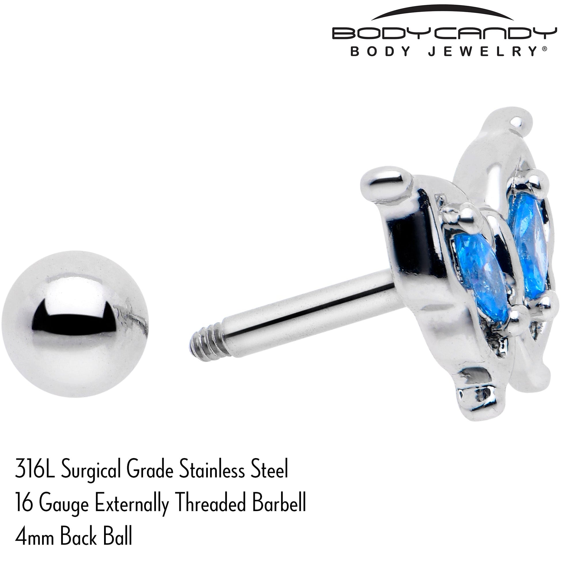 Add some butterfly fabulousness to your look with this 16 gauge tragus stud. It is made with a 6mm durable 316L surgical grade stainless steel straight barbell with a 4mm ball end. It features a butterfly charm, embellished with simple detailing. The wings are set with blue gems for an added touch of style and you can rock it in multiple piercings including tragus, helix, and some conch piercings. Fill your look with fabulous fashion with these lovely butterfly cartilage piercing jewelry.Specifications