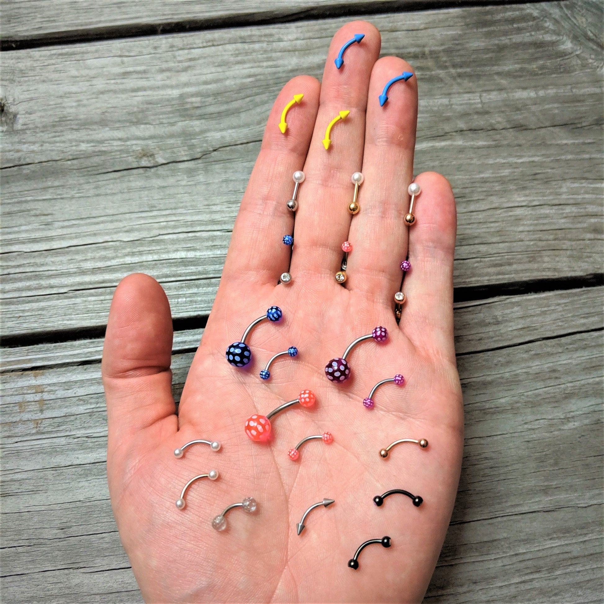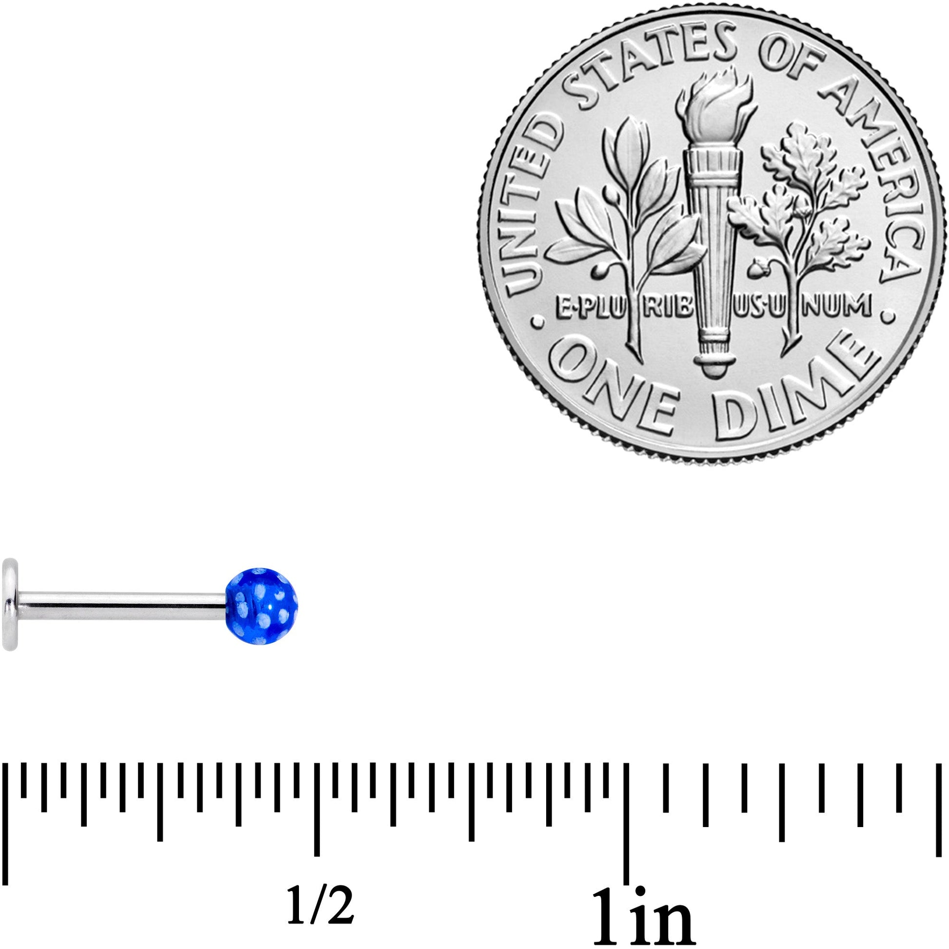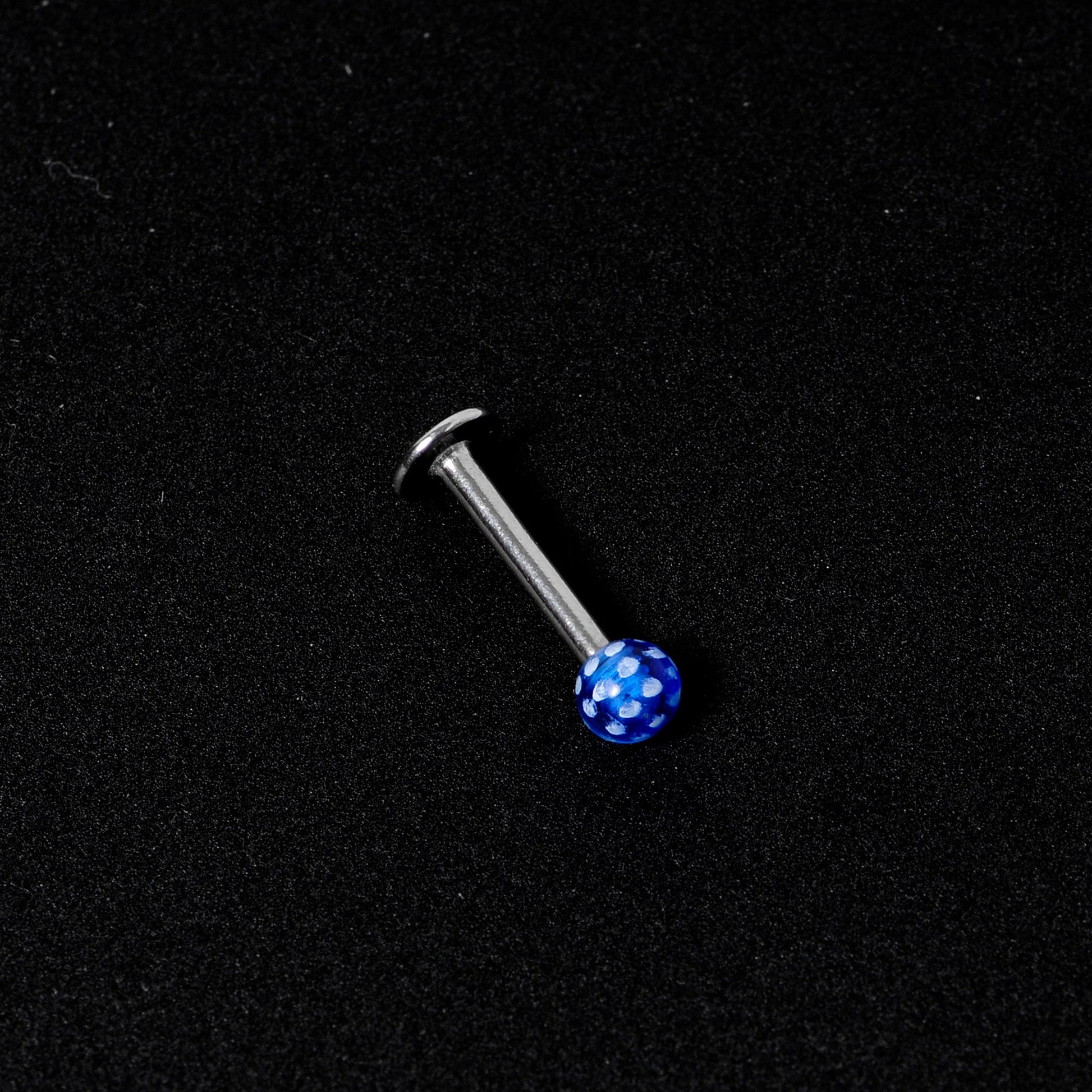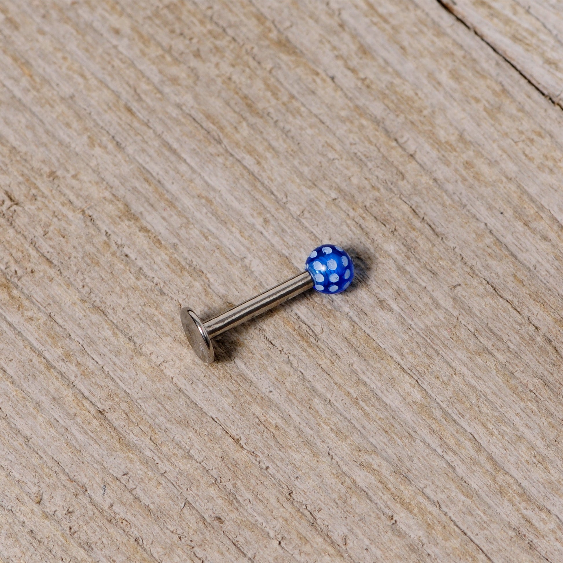Hypoallergenic jewelry for sensitive skin.16 Gauge 1/4 Blue Polka Dot UV Reactive Acrylic Ball Labret Tragus