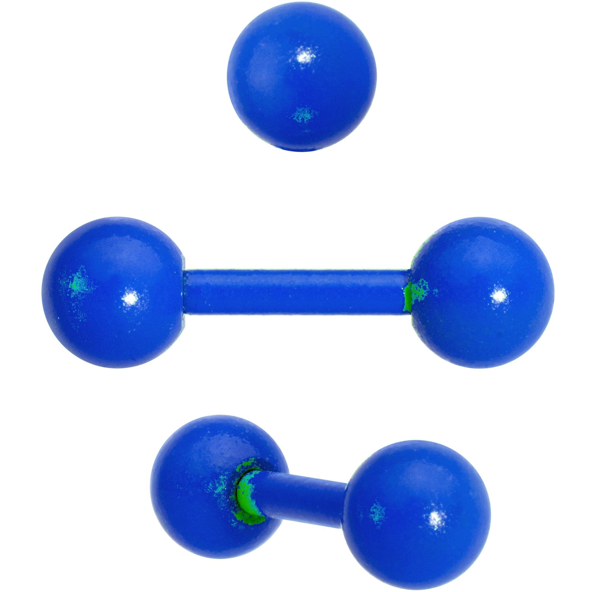 16 Gauge (1.2mm), 1/4" (6mm), Acrylic over 316L Surgical Grade Stainless Steel Straight Barbell, 316L Surgical Grade Stainless Steel Barbell, 3mm Ball Ends, Glow in the Dark, Sold as a Set of 3