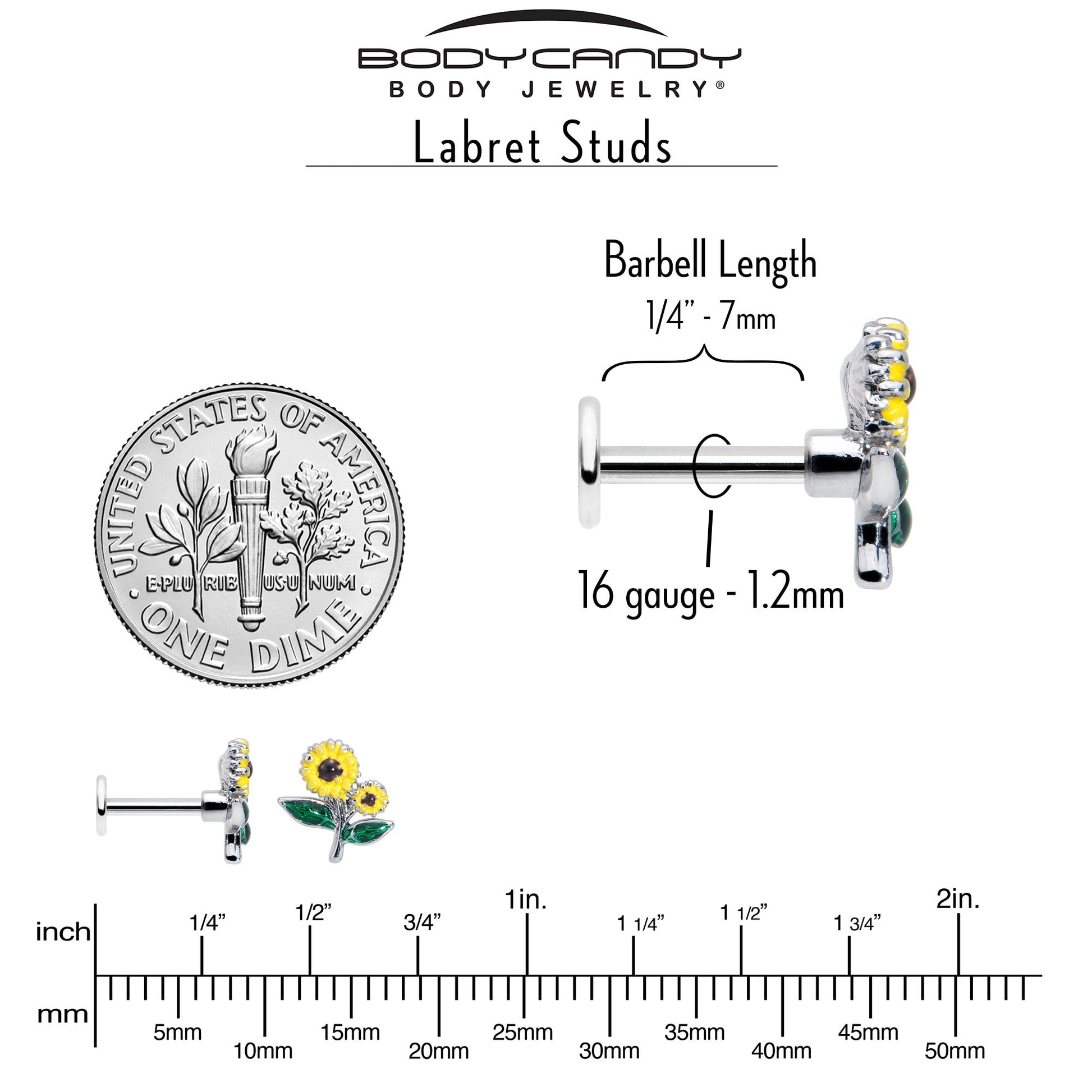 16G 1/4 Cheery Inlay Sunflowers Labret