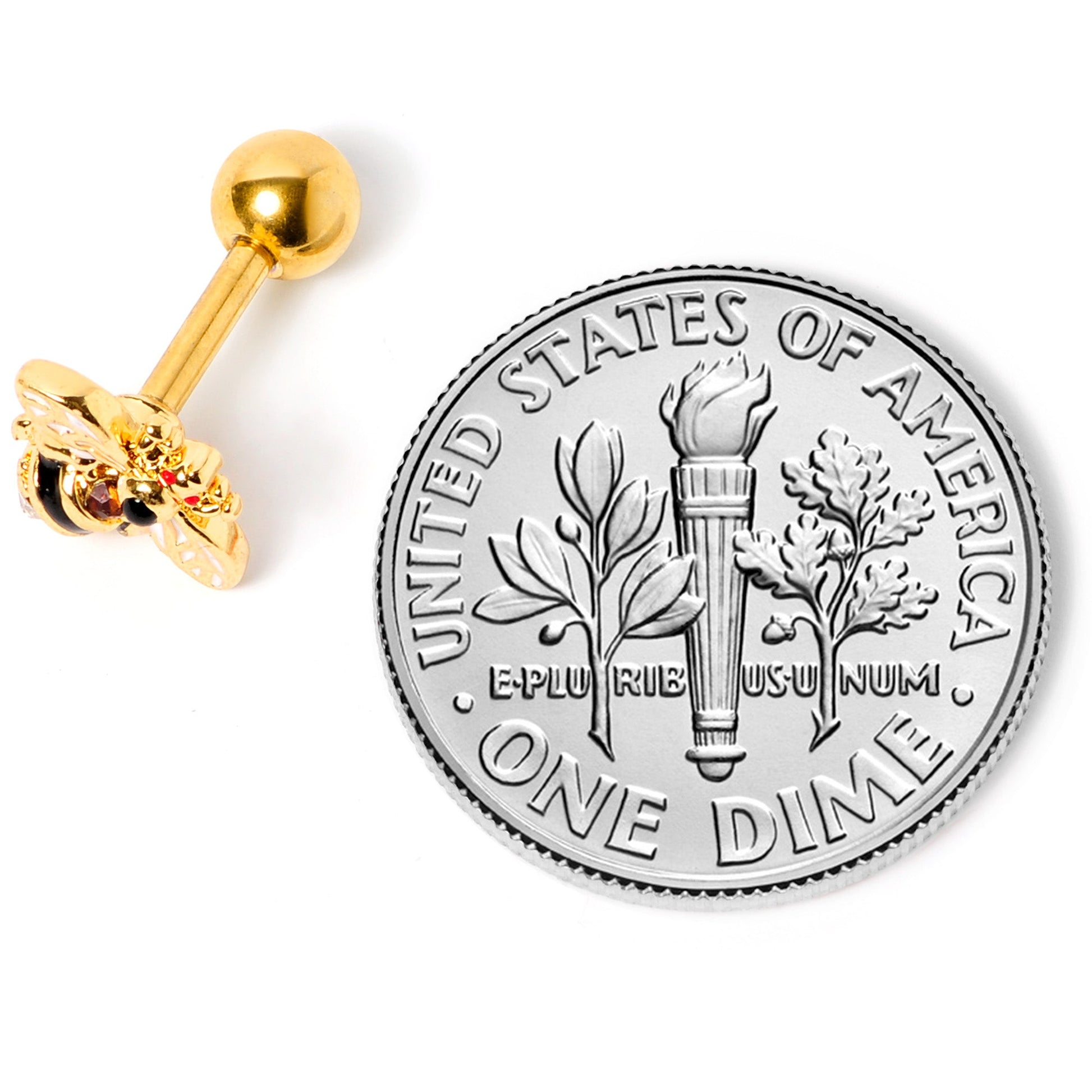 16G 1/4 Clear Black Gem Gold Tone Honey Bee Cartilage Tragus