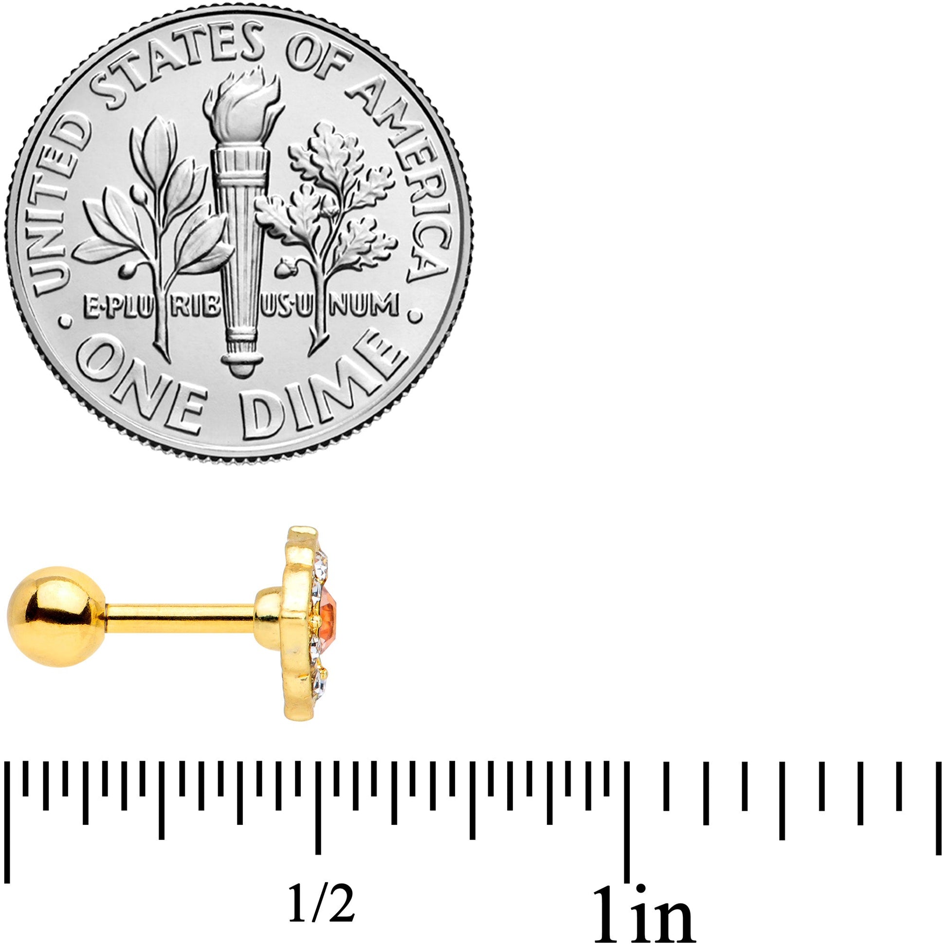 Let your cartilage piercing feel like royalty with this 16 gauge tragus stud! It's made with a 6mm gold tone PVD over 316L surgical grade stainless steel straight barbell with a 4mm ball end. It features a rhombus-shaped charm completely paved with clear cubic zirconia gems and embellished with an open center. Set in the center in a large smoky yellow gem for a look that's rich and cohesive. You can rock this rhombus in multiple piercings including tragus, helix, and some conch piercings....as befits royalty! You'll be ready to take your throne with this regal rhombus cartilage jewelry!Specifications