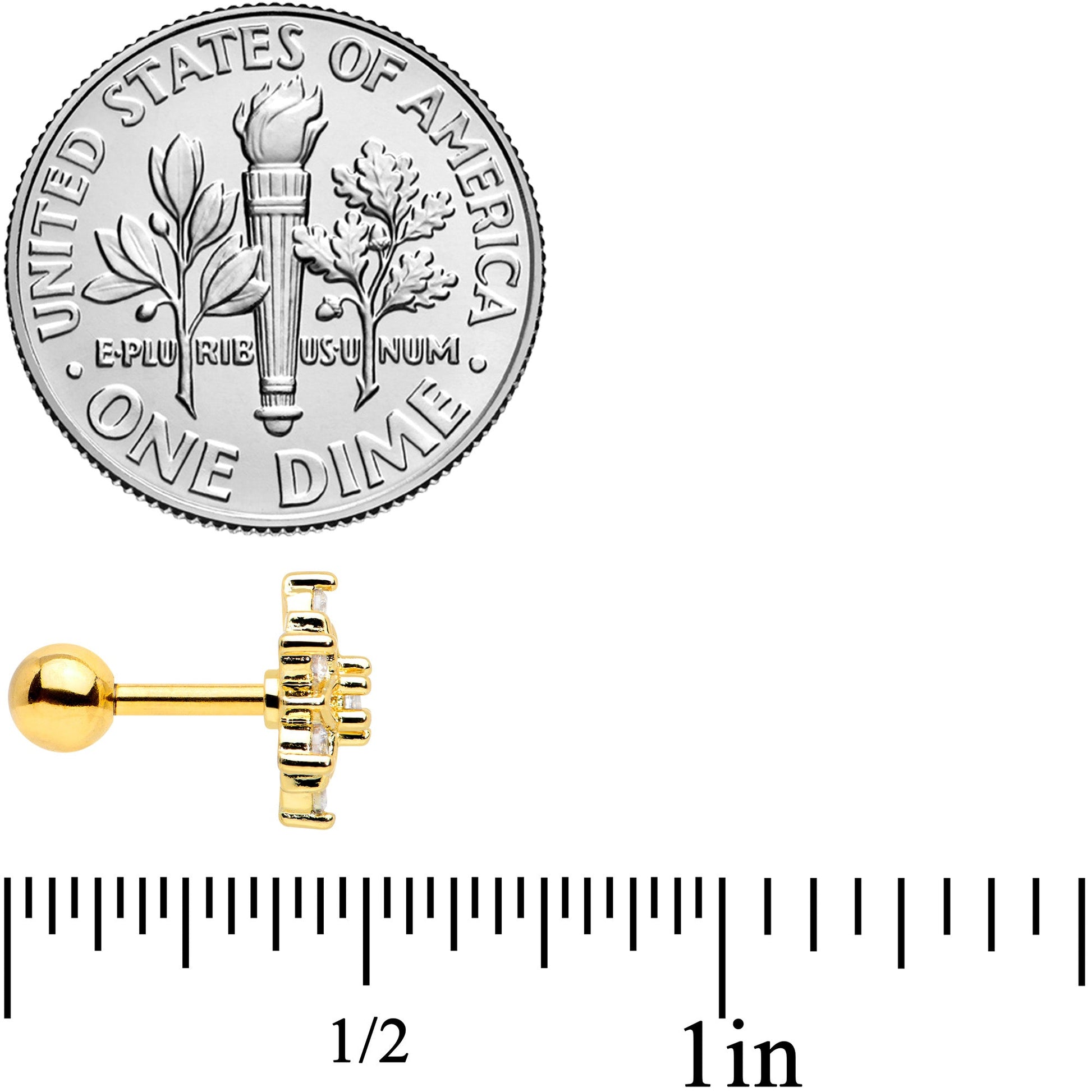 16 Gauge 1/4 Clear Gem Gold Tone Flower Snowflake Christmas Cartilage Tragus