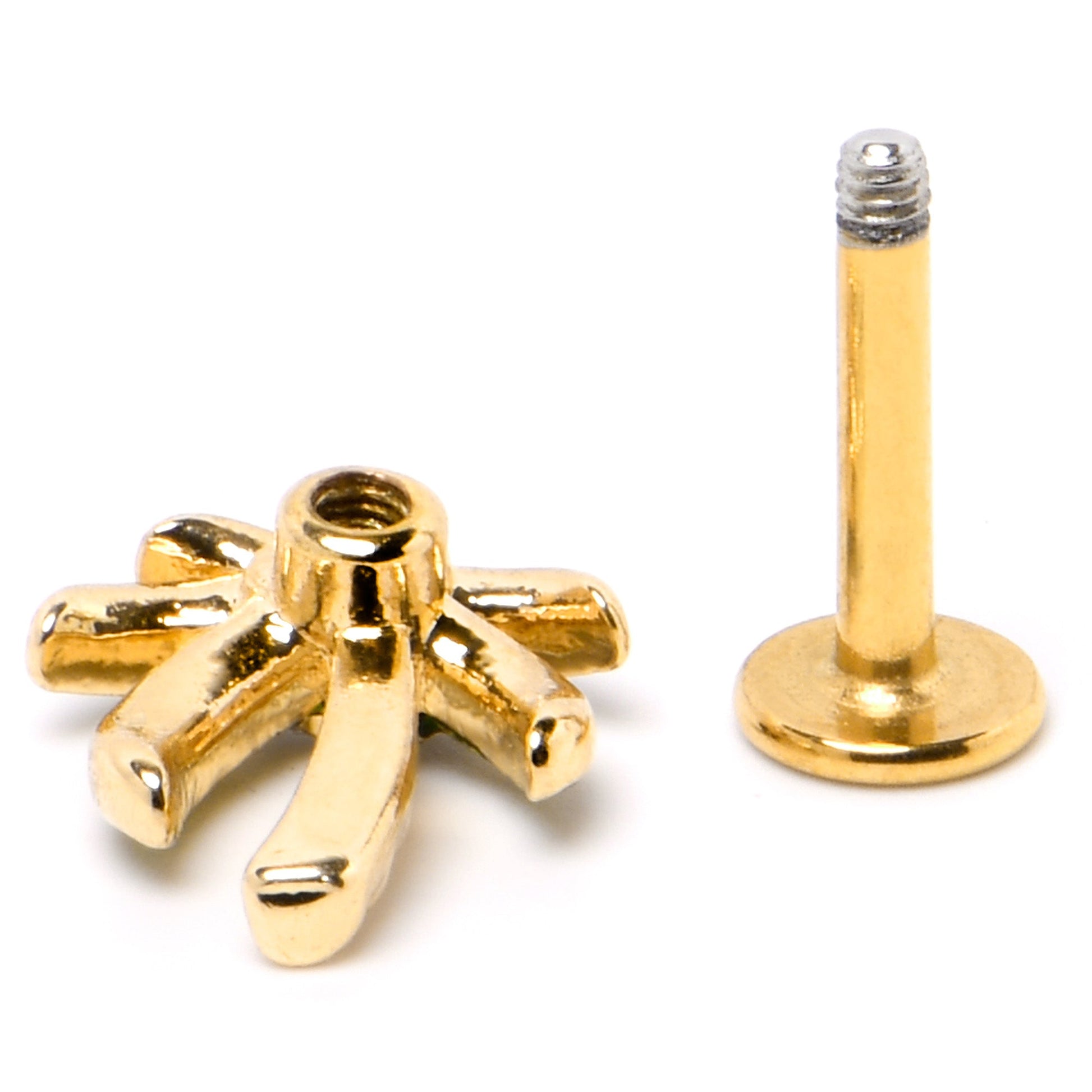 16 Gauge 1/4 Clear Gem Gold Tone Palm Tree Style Labret